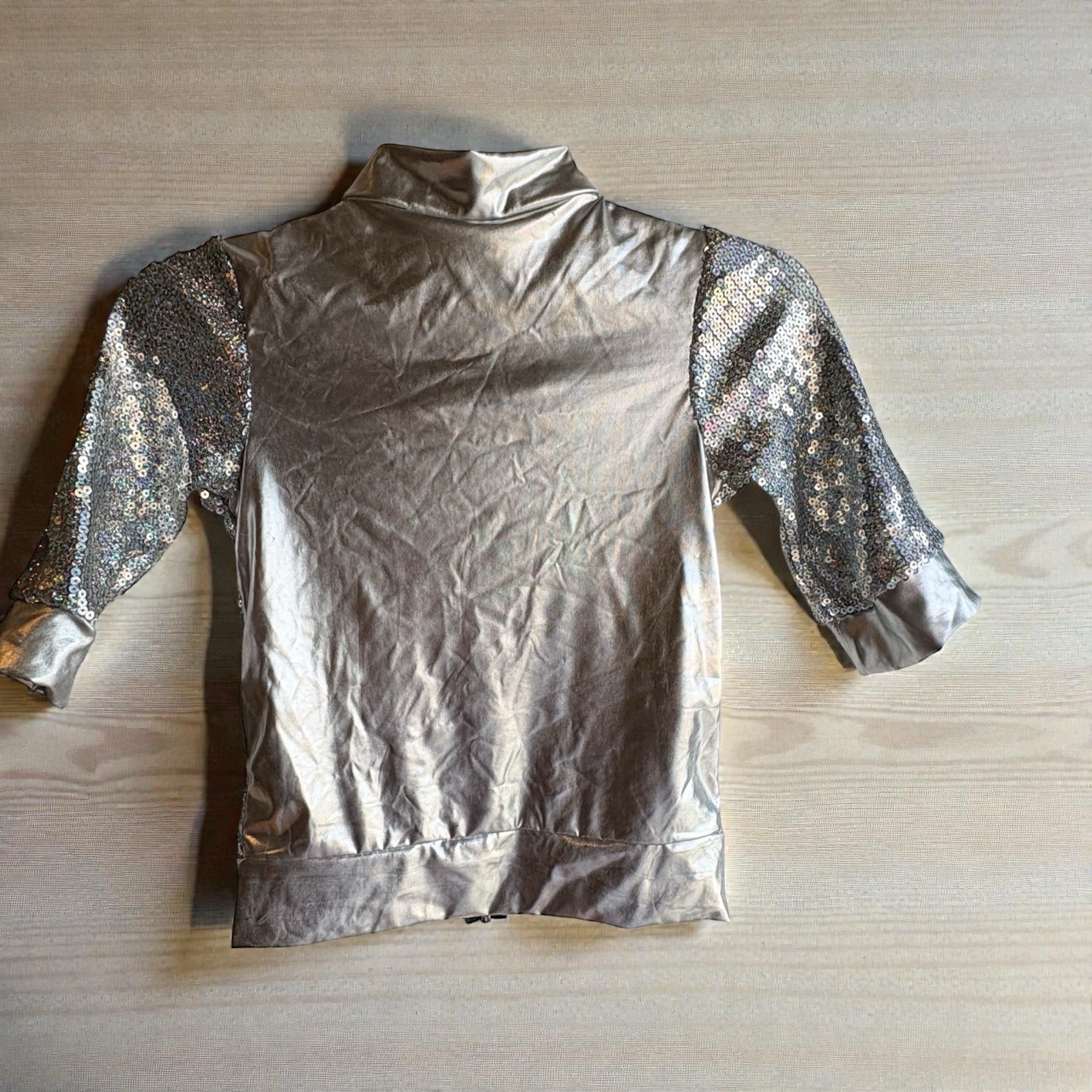 Weissman Girls Silver Holographic Sequin Jacket Dance Costume Size 1C Y7/8 EUC