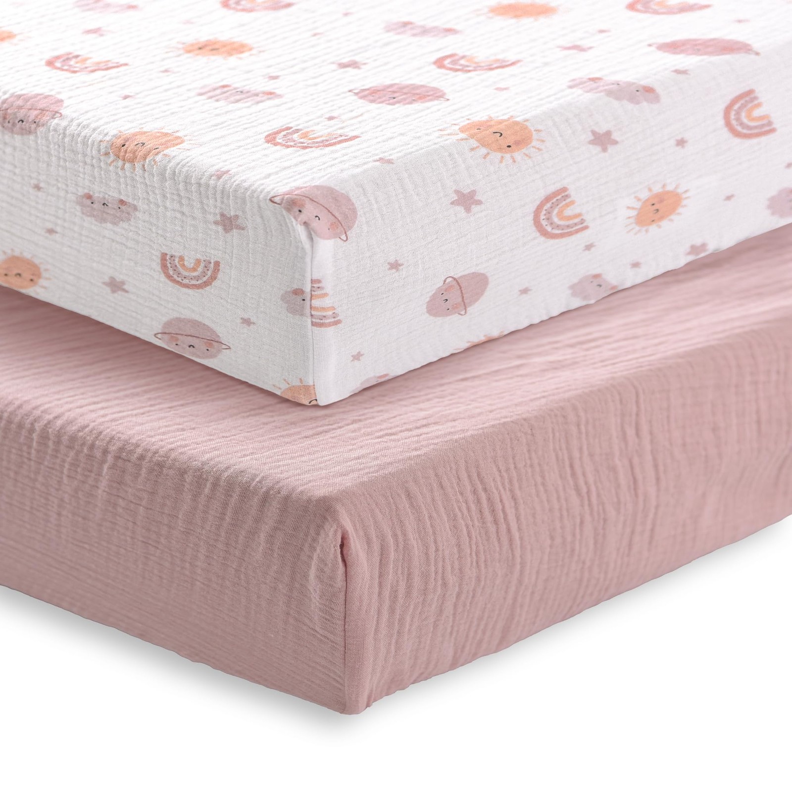 как выглядит Baby Crib Sheets 2 PCS, 100 Organic Cotton Crib Sheet for Standard Crib Mattr... фото