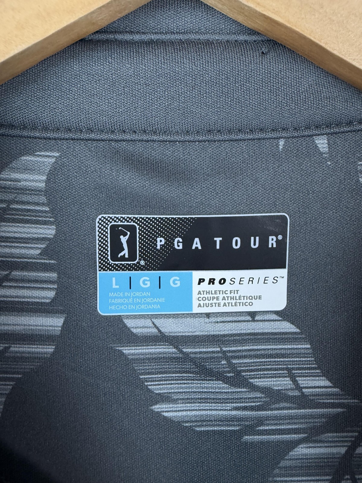 PGA Tour Pro Series Polo Shirt Mens Large Gray Tropical Leaf Golf Stretch Print