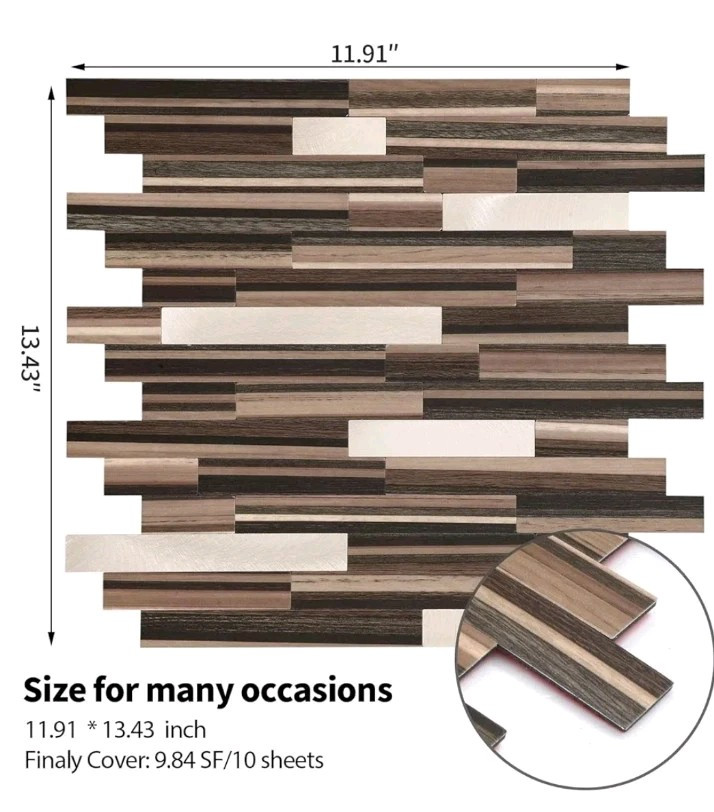 как выглядит Yipscazo 10 Sheets Peel and Stick Stone Metal Tile Backsplash, Stick on Tiles fo фото