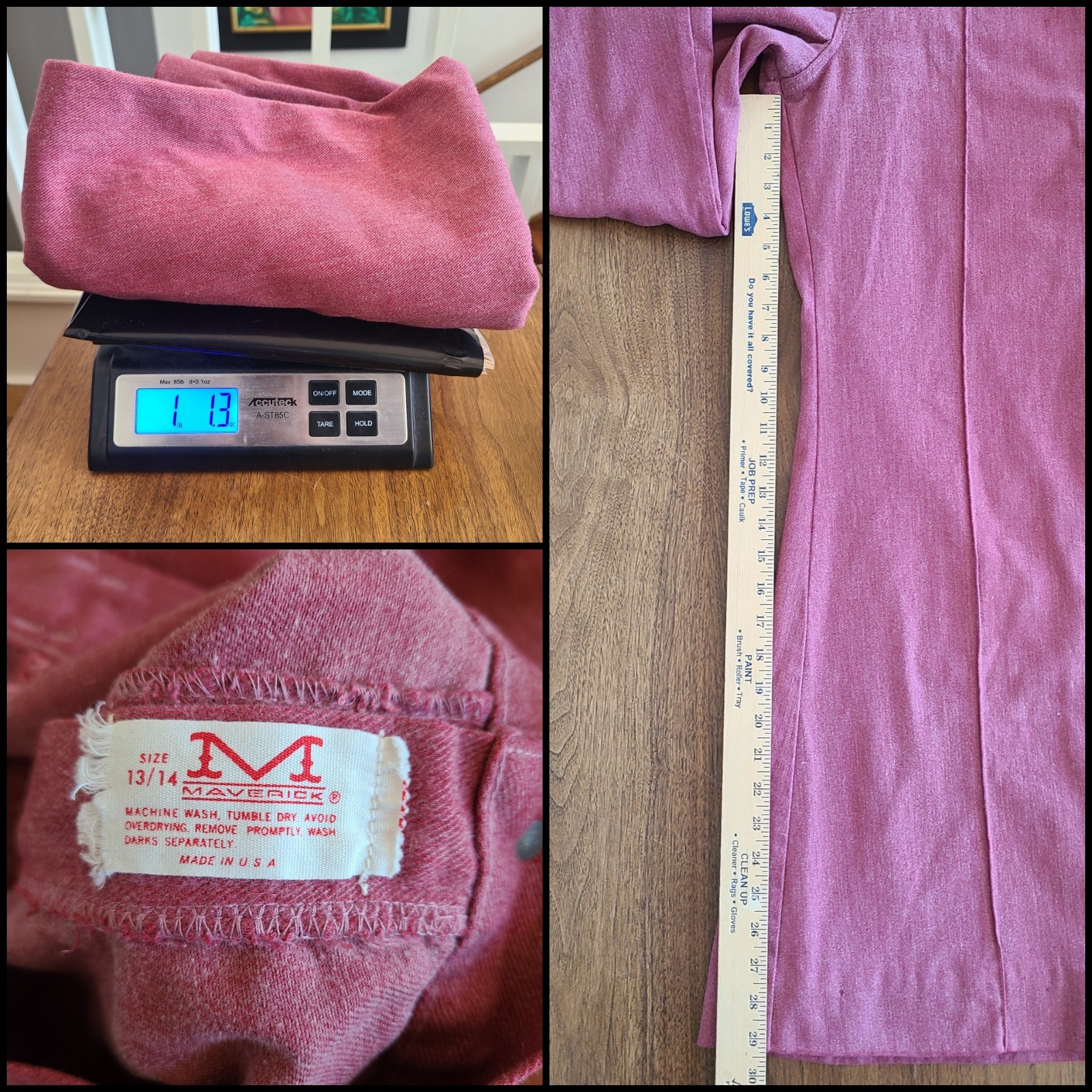 как выглядит Vintage 1970s Light Maroon Hi Rise Wide Bell Bottoms Maverick Medium READ фото