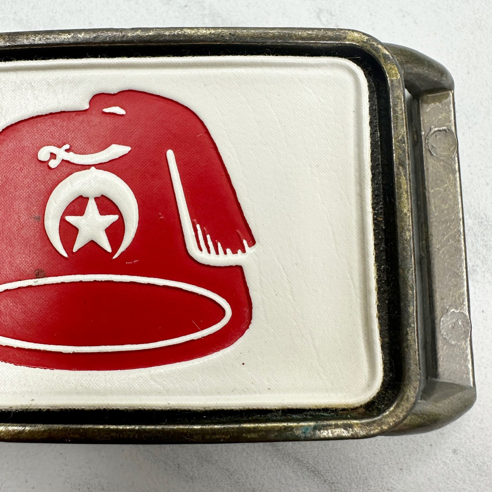 как выглядит Vintage Shriners Fez Belt Buckle Red White Insert Masonic Fraternal фото
