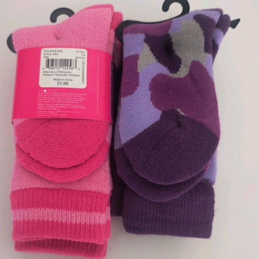 Lot of 4 PAIR, 2 packs GIRLS Medium 10.5-4 KODIAK THERMAL BLEND SOCKS New