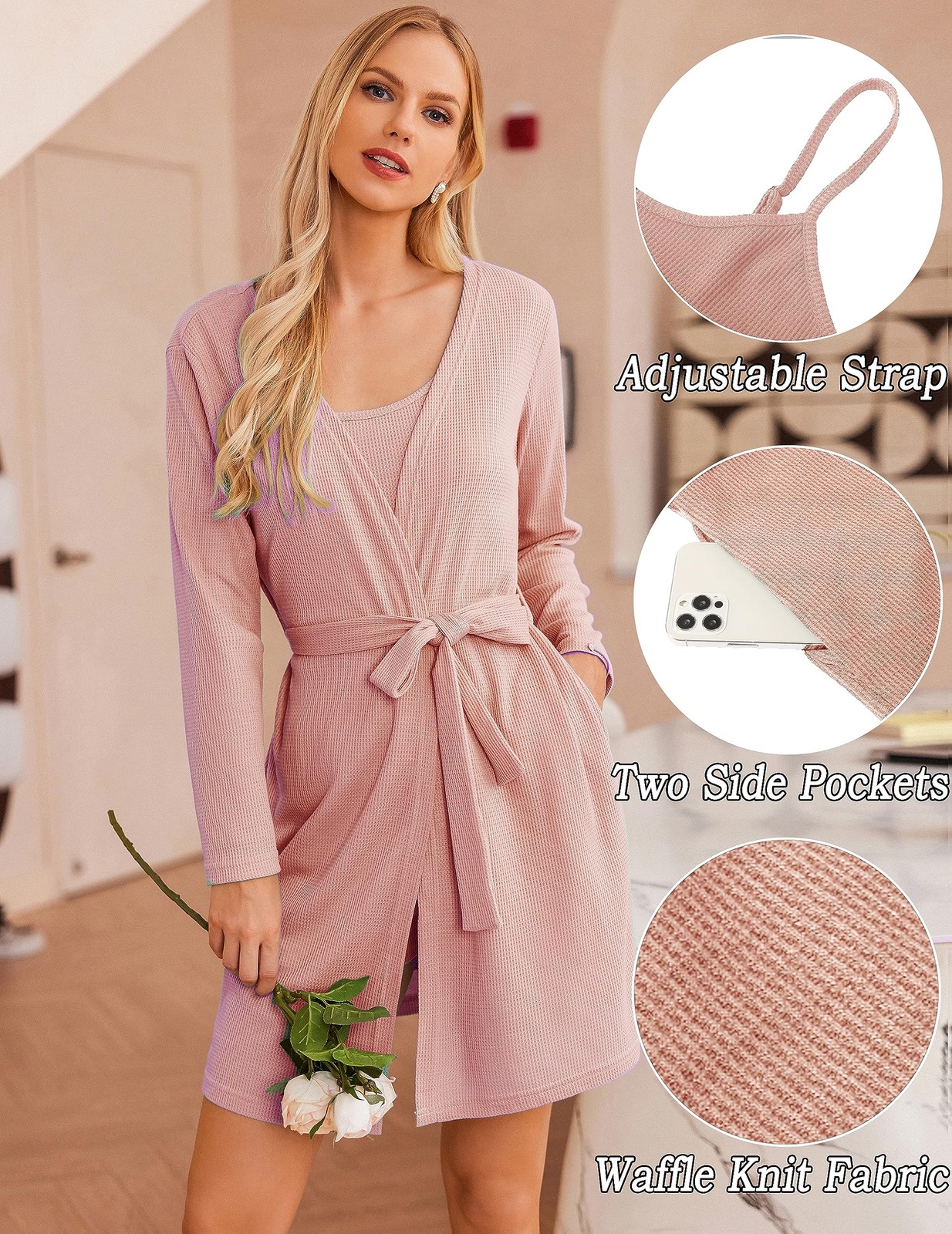 как выглядит Pajamas for Women Set 3 Piece Lounge Set Soft Pajama Sets Waffle Knit Tank To... фото