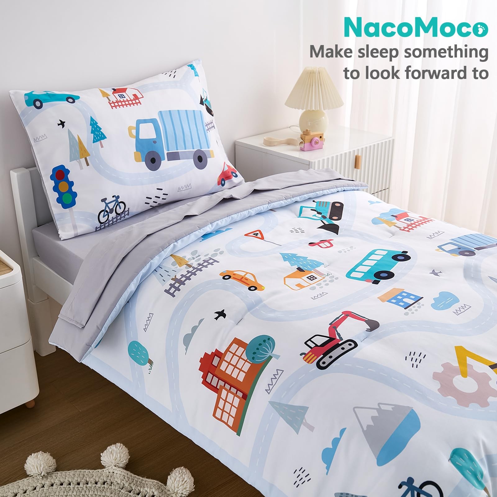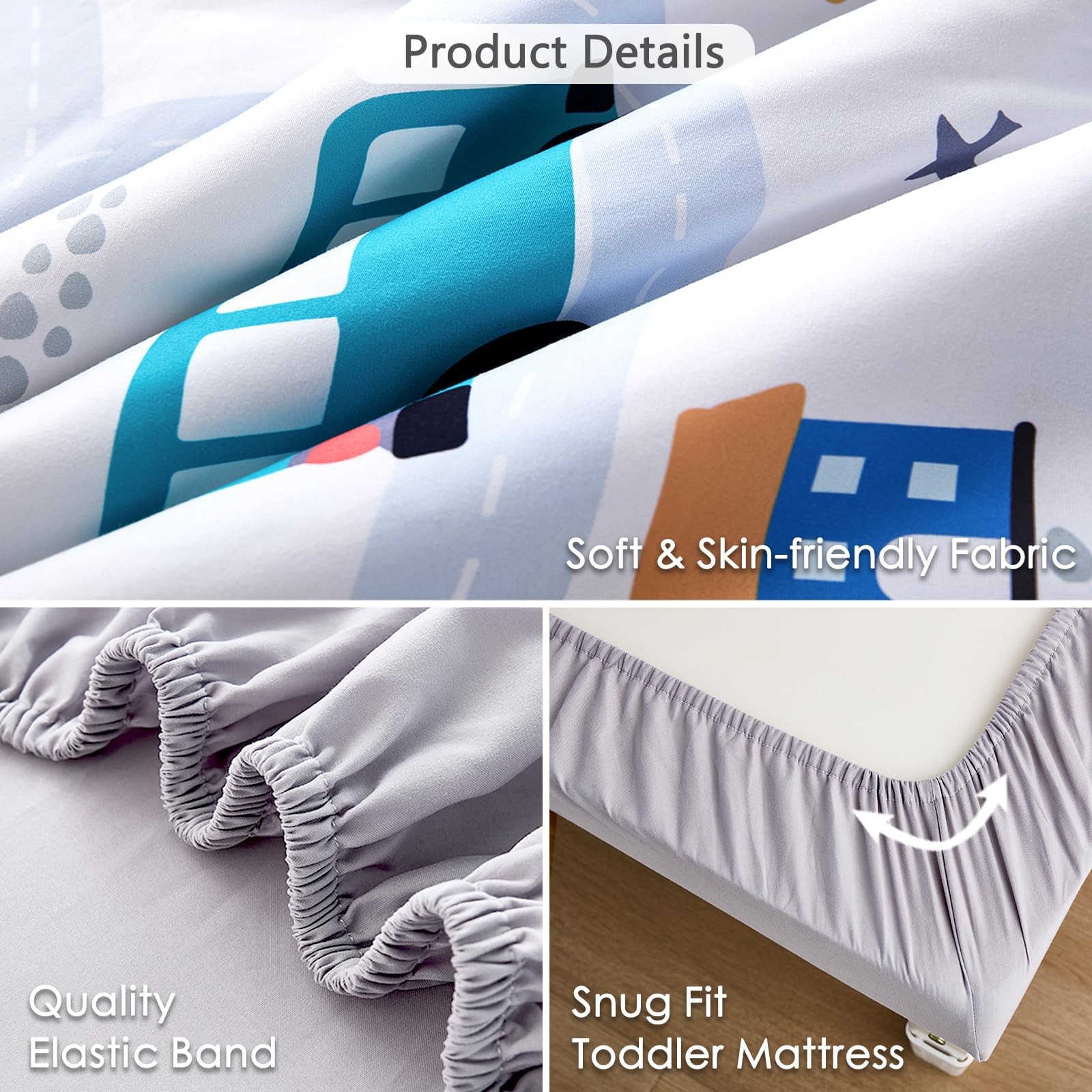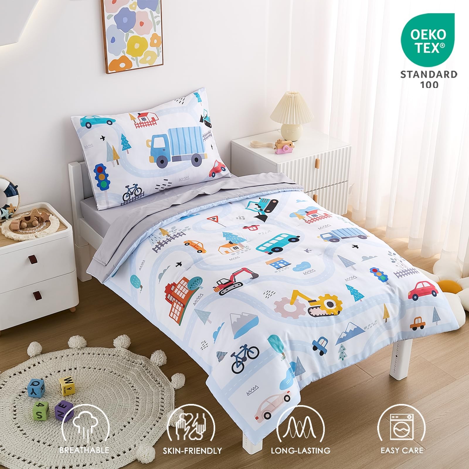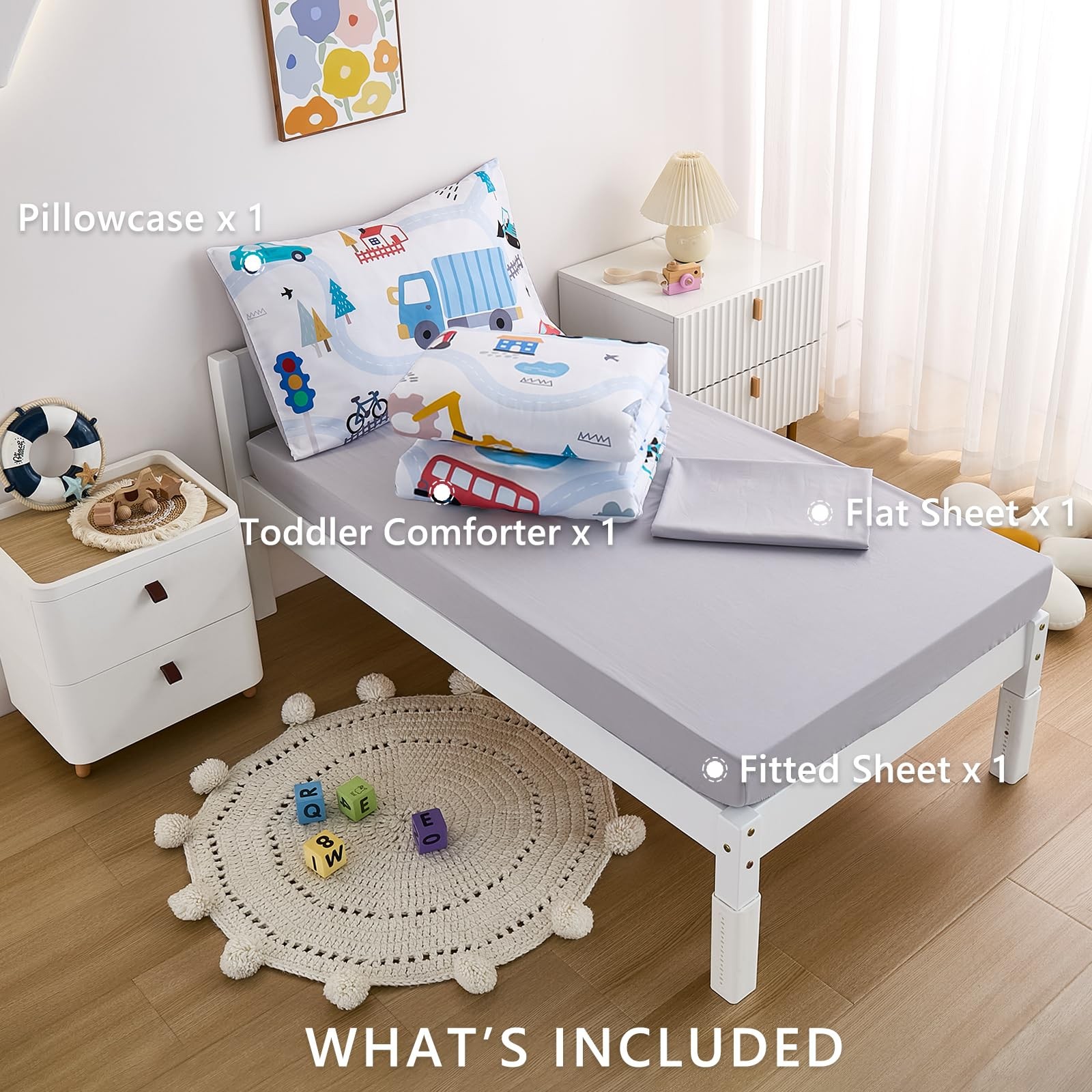 4-Piece Cars Toddler Bedding Set for Boys Girls- Soft Skin Friendly Toddler ...