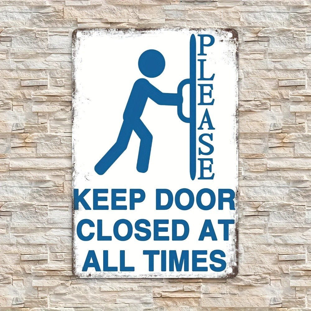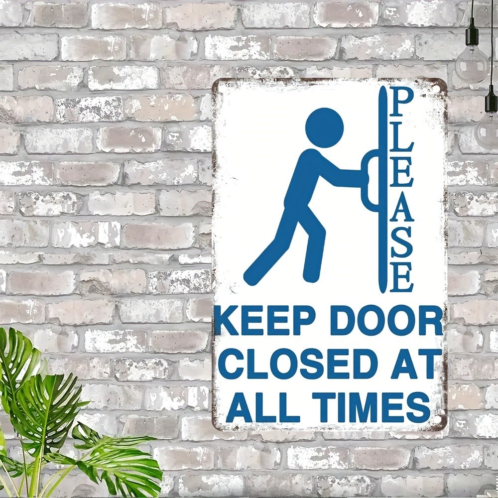 Retro Warning Metal Sign Please Keep Door Closed Business Safety Hanging Decor