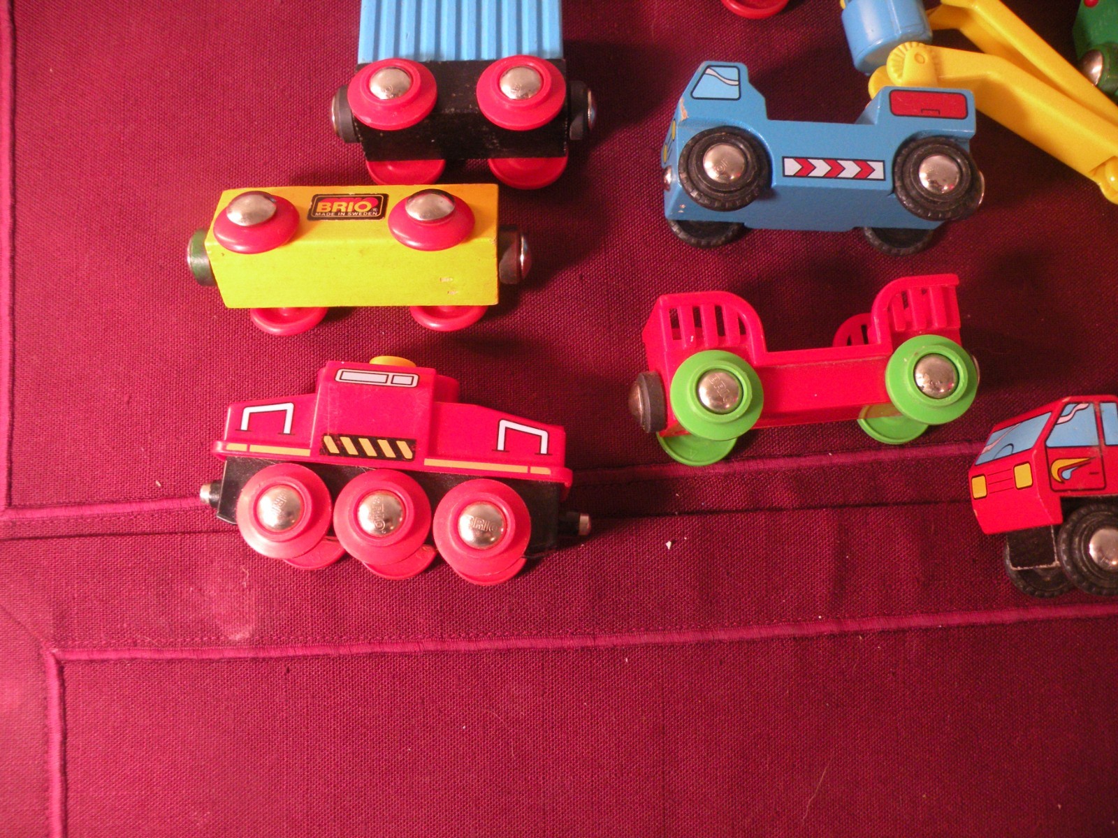 как выглядит Lot Of 11 Vintage BRIO Wooden Railway Train Cars Trucks Sweden фото