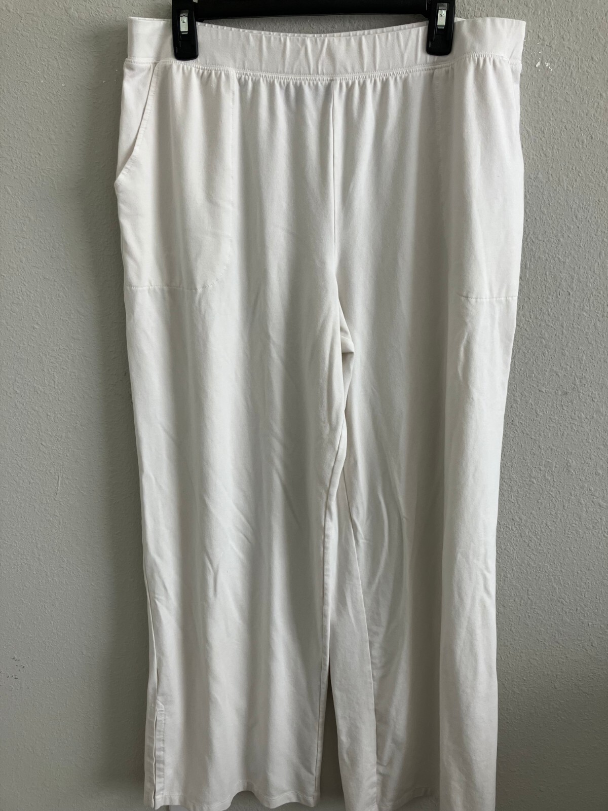 как выглядит Denim Co. Beach Jersey Regular Wide Leg Pant Slits - White Sz L a637289 фото