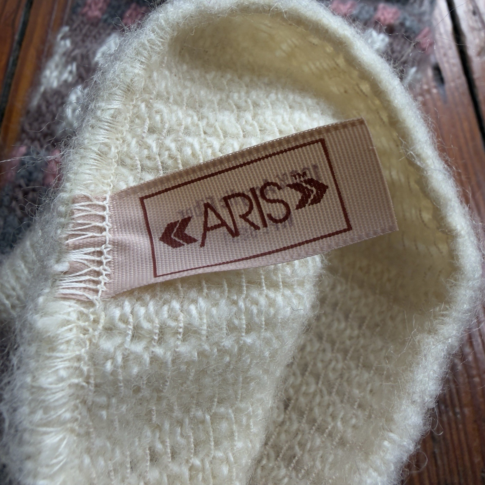 как выглядит Vintage early 1980s Aris fuzzy knit cream w pattern feminine leg warmers фото