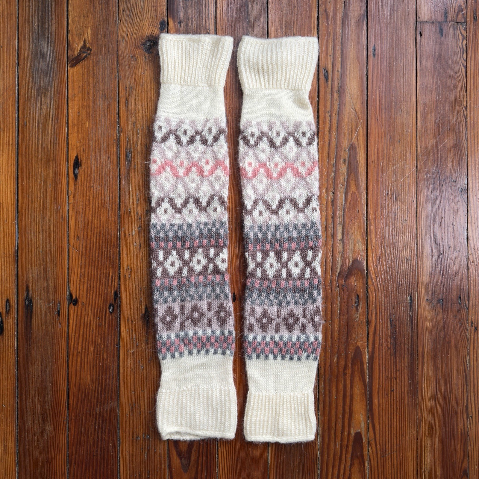 Vintage early 1980s Aris fuzzy knit cream w pattern feminine leg warmers