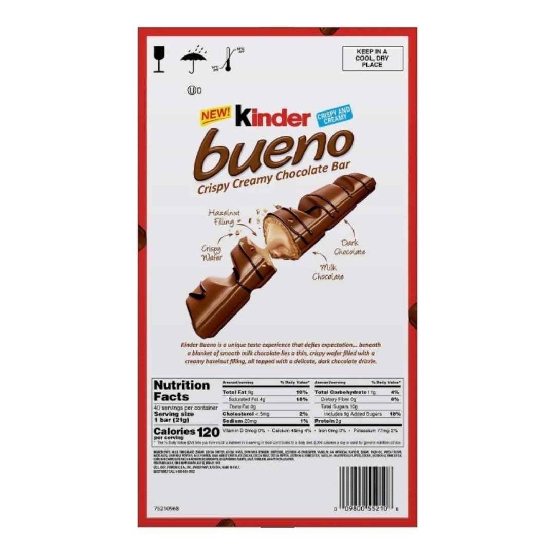 Kinder Bueno Chocolate and Hazelnut Chocolate Bars, 2 Bars, 1.5 oz, 20 Pack