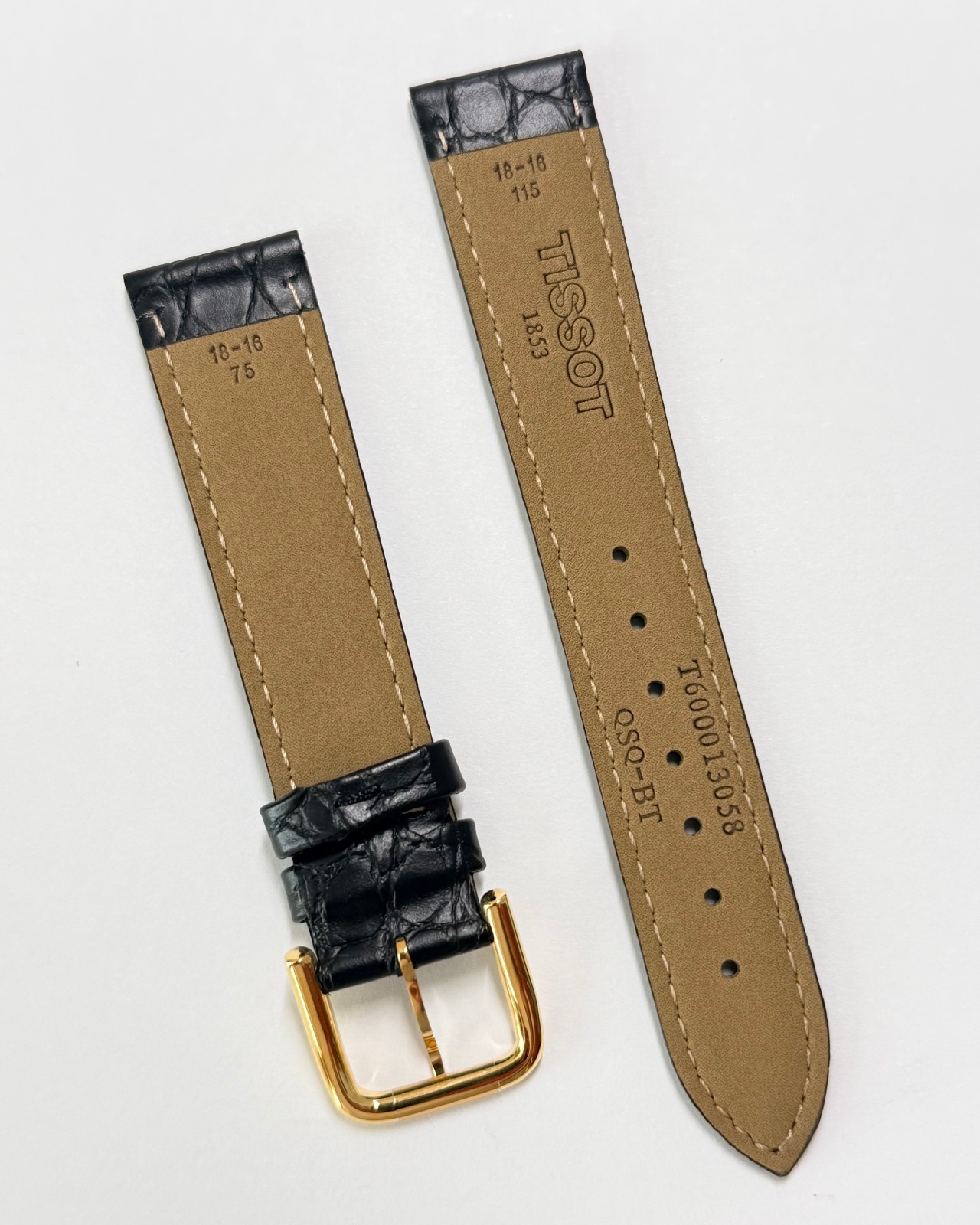 Original Tissot 18mm Black Leather Watch Band Strap with Yellow Gold Buckle