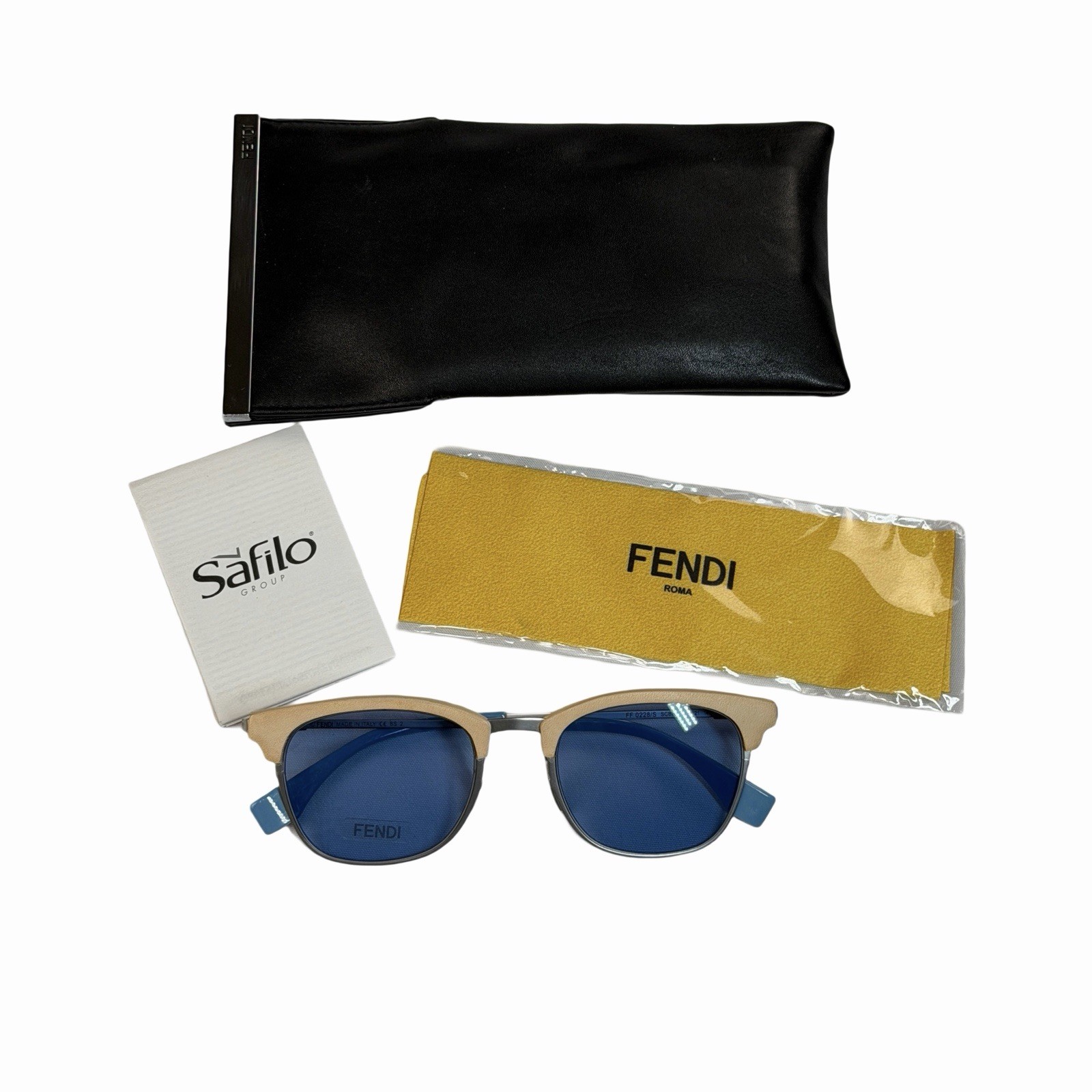 Fendi FF0228/S SCBKU Tan Blue Silver Frame Blue Lenses Sunglasses Case - MINTY