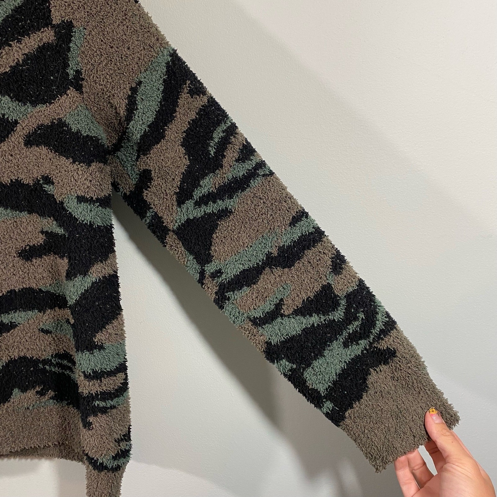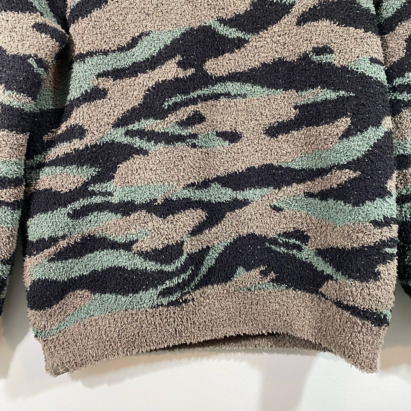 как выглядит Barefoot Dreams Cozy Chic Womens Green Camo Fuzzy Pullover Sweater Size M фото