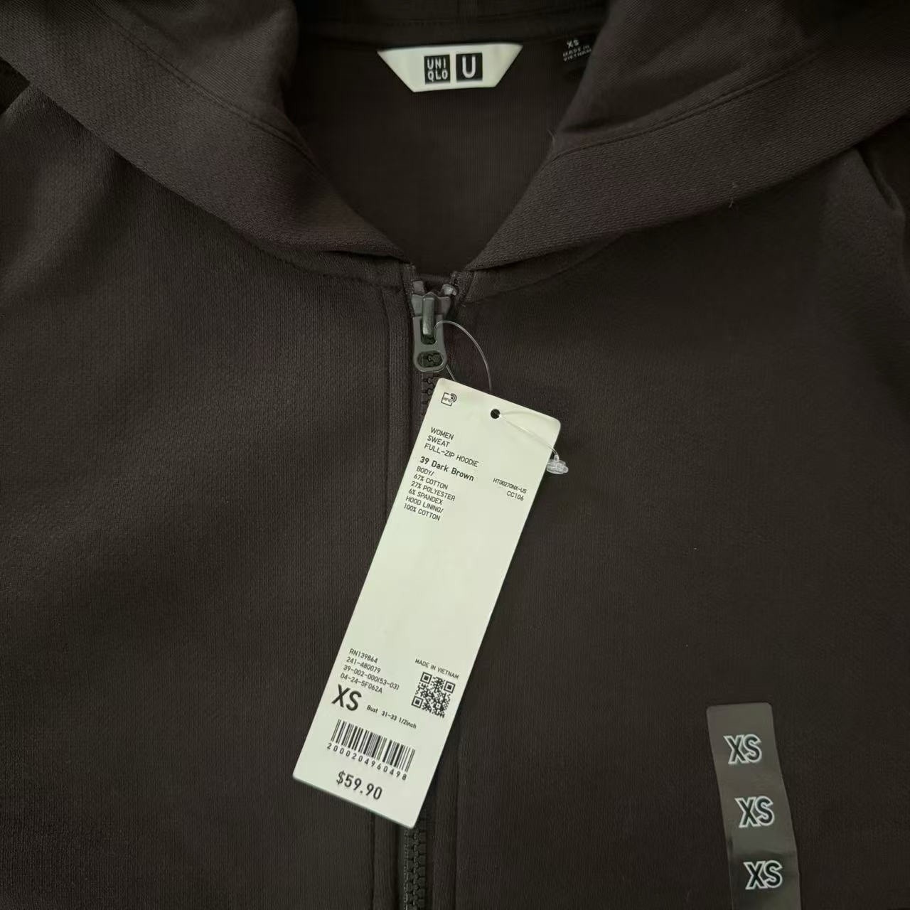 Uniqlo U Sweat Full Zip Hoodie Dark Brown Women's Size XS