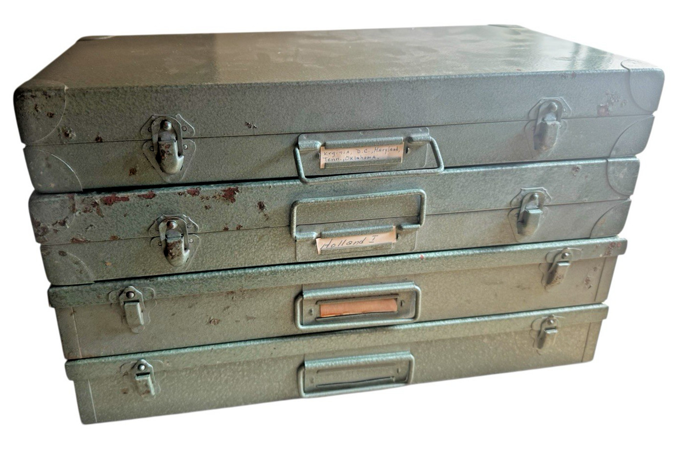 Vintage Metal PHOTO SLIDE Case SET OF 4 Storage Stores 150 ea Picture Photo Film