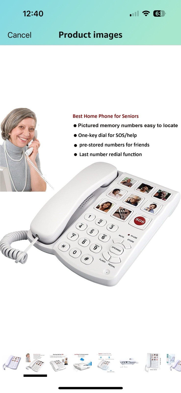 Big Button Corded Landline Phone with Photo Memory Dialing for Seniors