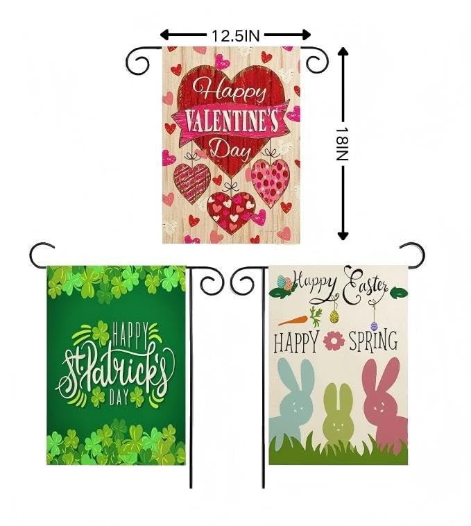 Valentine's Day Garden Flag, St. Patrick's Day Easter Outdoor Flags 3 Pack -