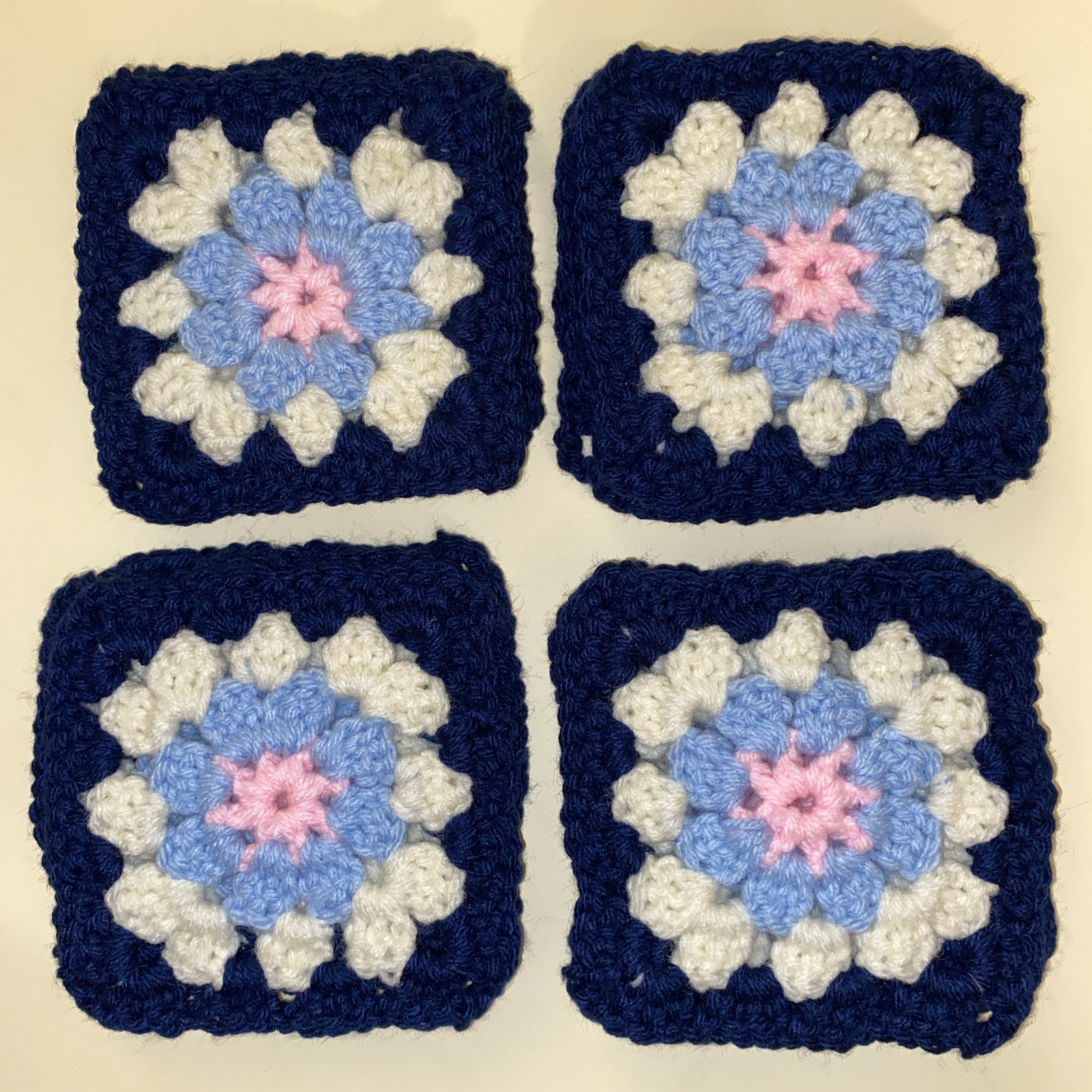 как выглядит Forget Me Not GRANNY SQUARE Lot - 12 Hand Made Crochet Squares фото