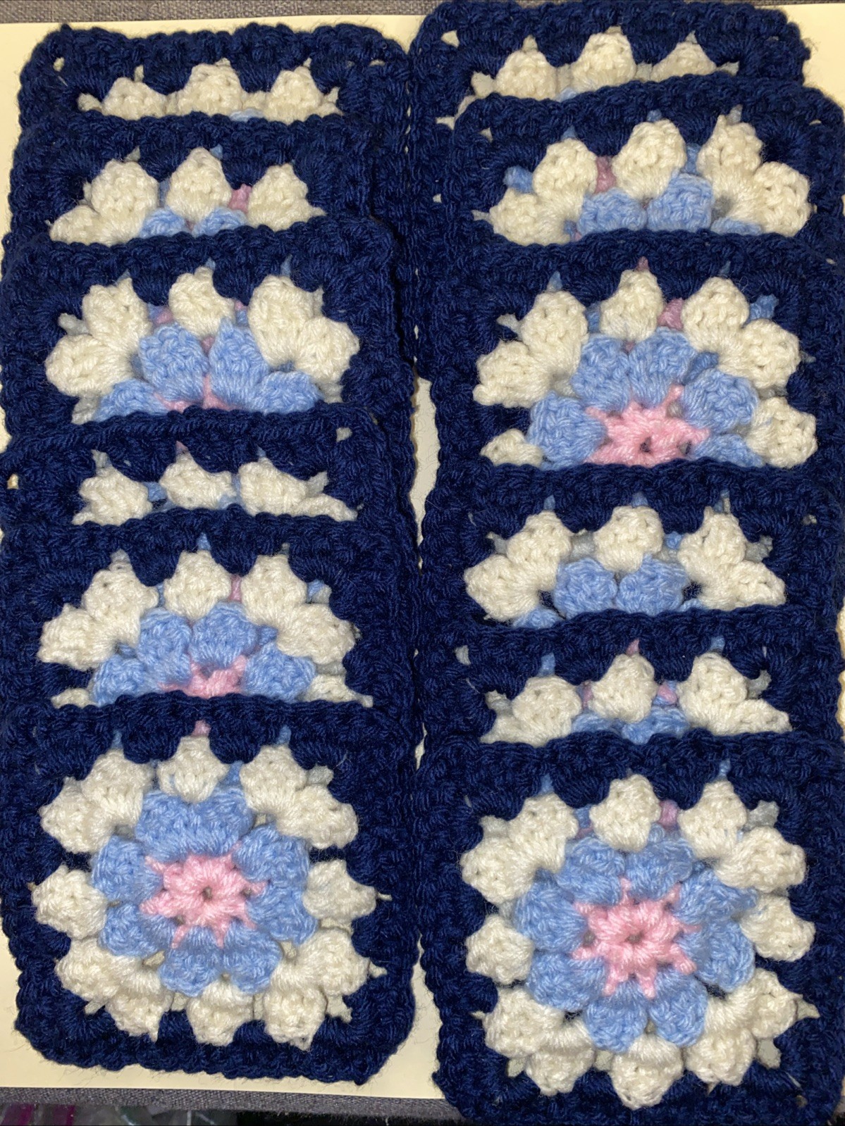 Forget Me Not GRANNY SQUARE Lot - 12 Hand Made Crochet Squares