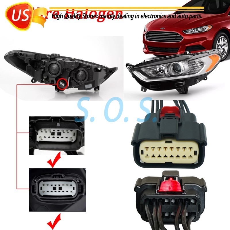 16 Pin 7 Wire Halogen Headlight Connector Harness Fit Ford Fusion 2013-2016