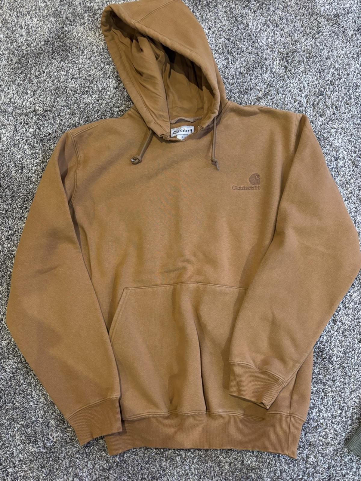 как выглядит VTG 90 s Carhartt Rugged Outdoor Wear Hoodie Small Distressed Brown Tan Rate фото