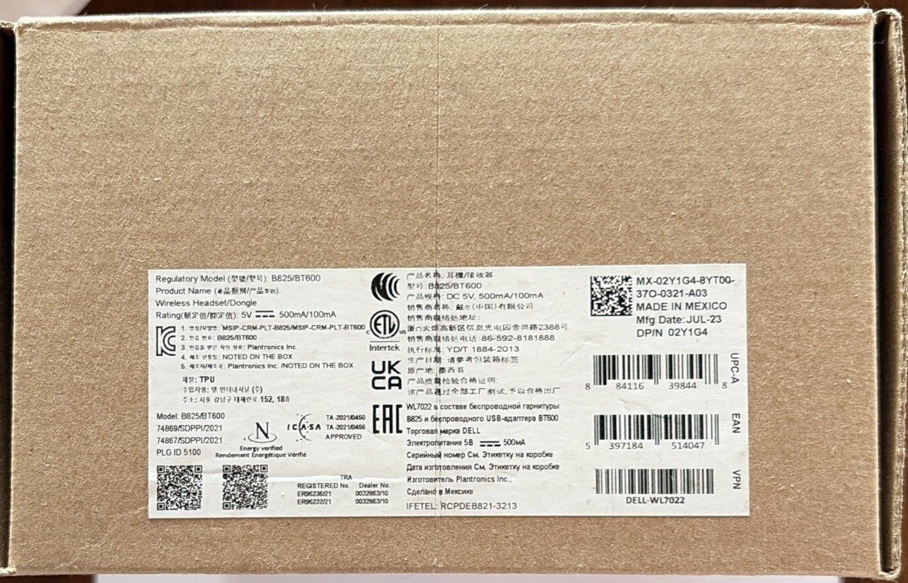Dell Premier Wireless Headset Plantronics Voyager Bluetooth B825/BT600 2Y1G4