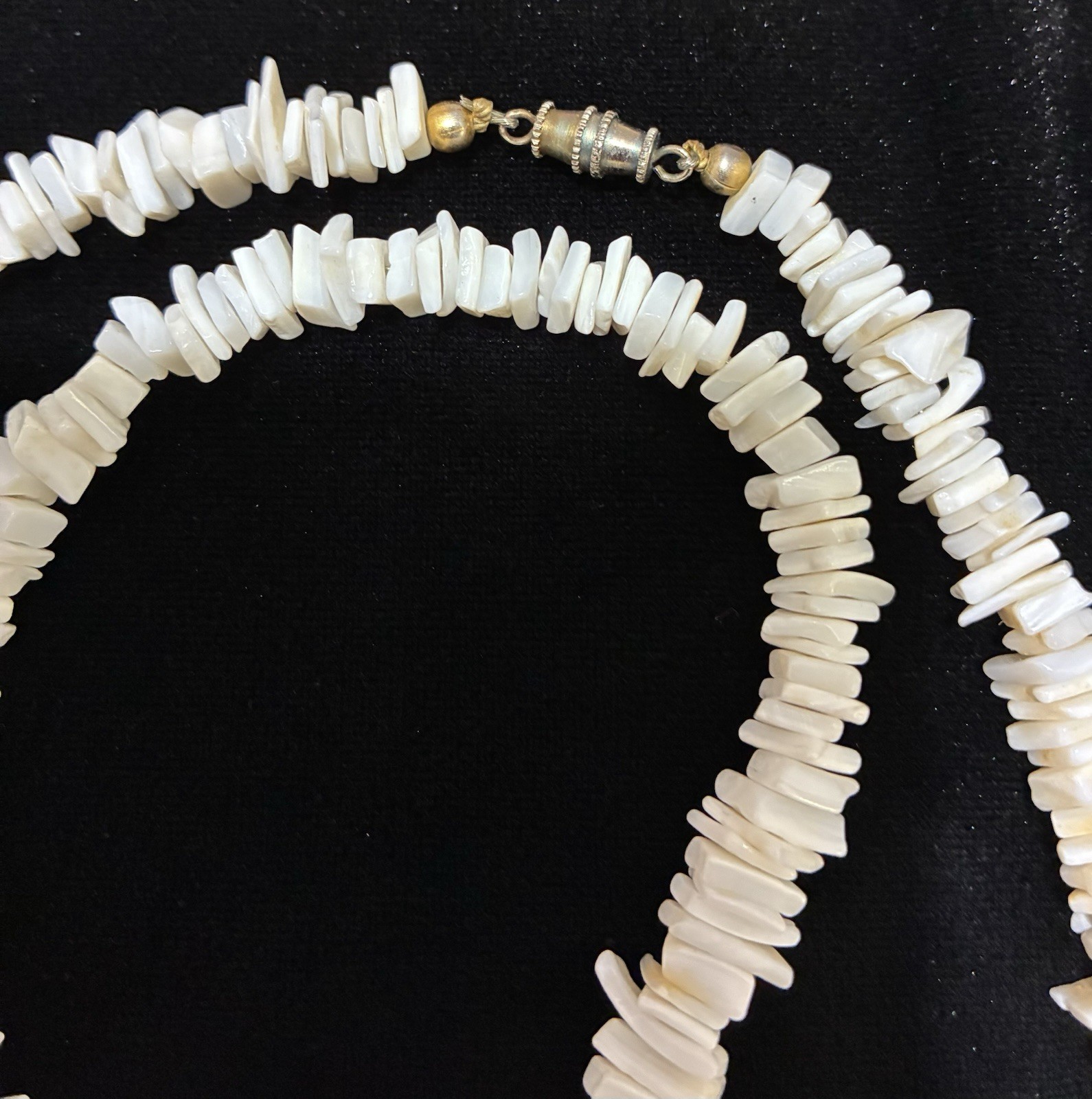 Vintage 29 Long Puka Shell Necklace Barrel Clasp White Clam Chips