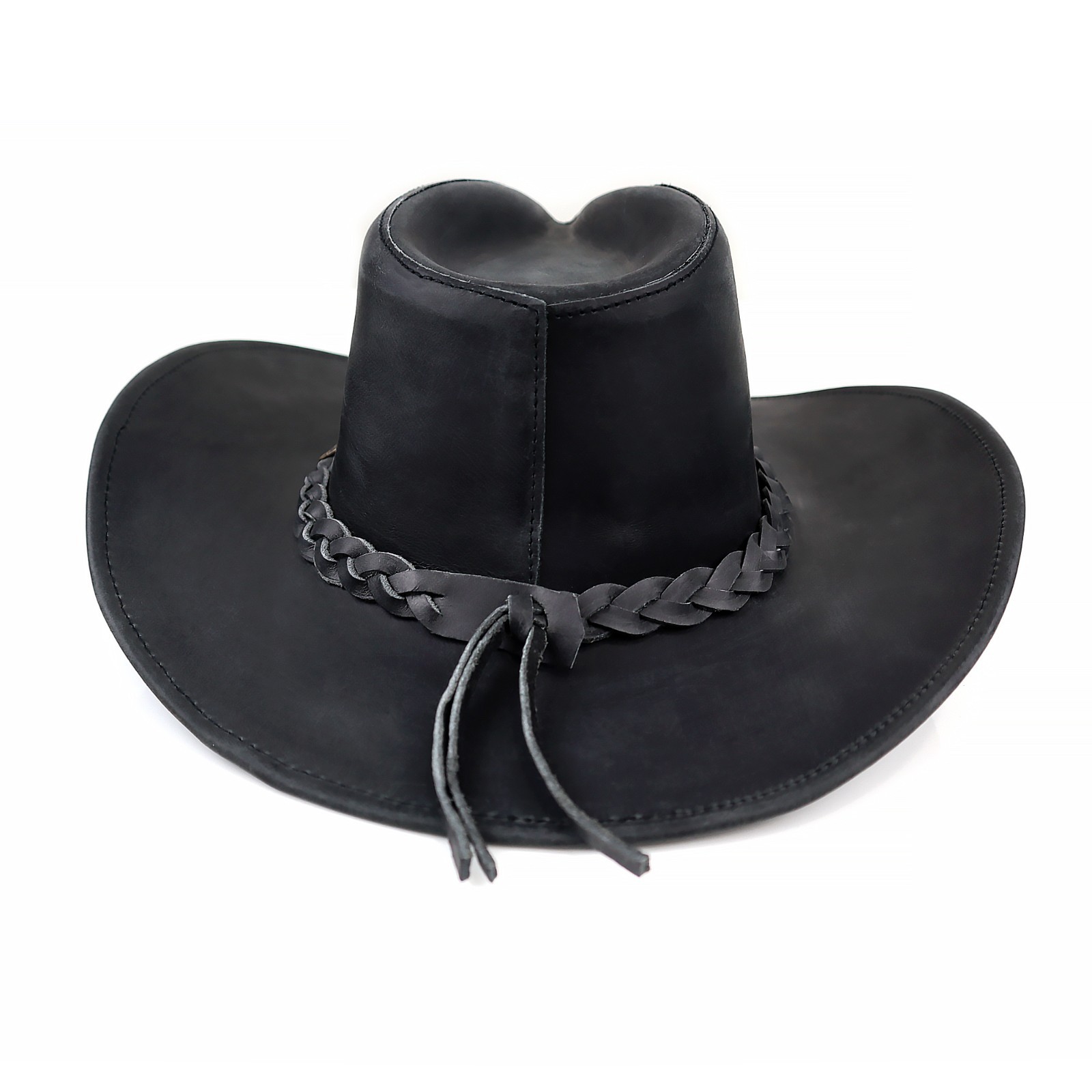 Black Brown Genuine Leather Cowboy Woman Men Western Hat Vintage Style