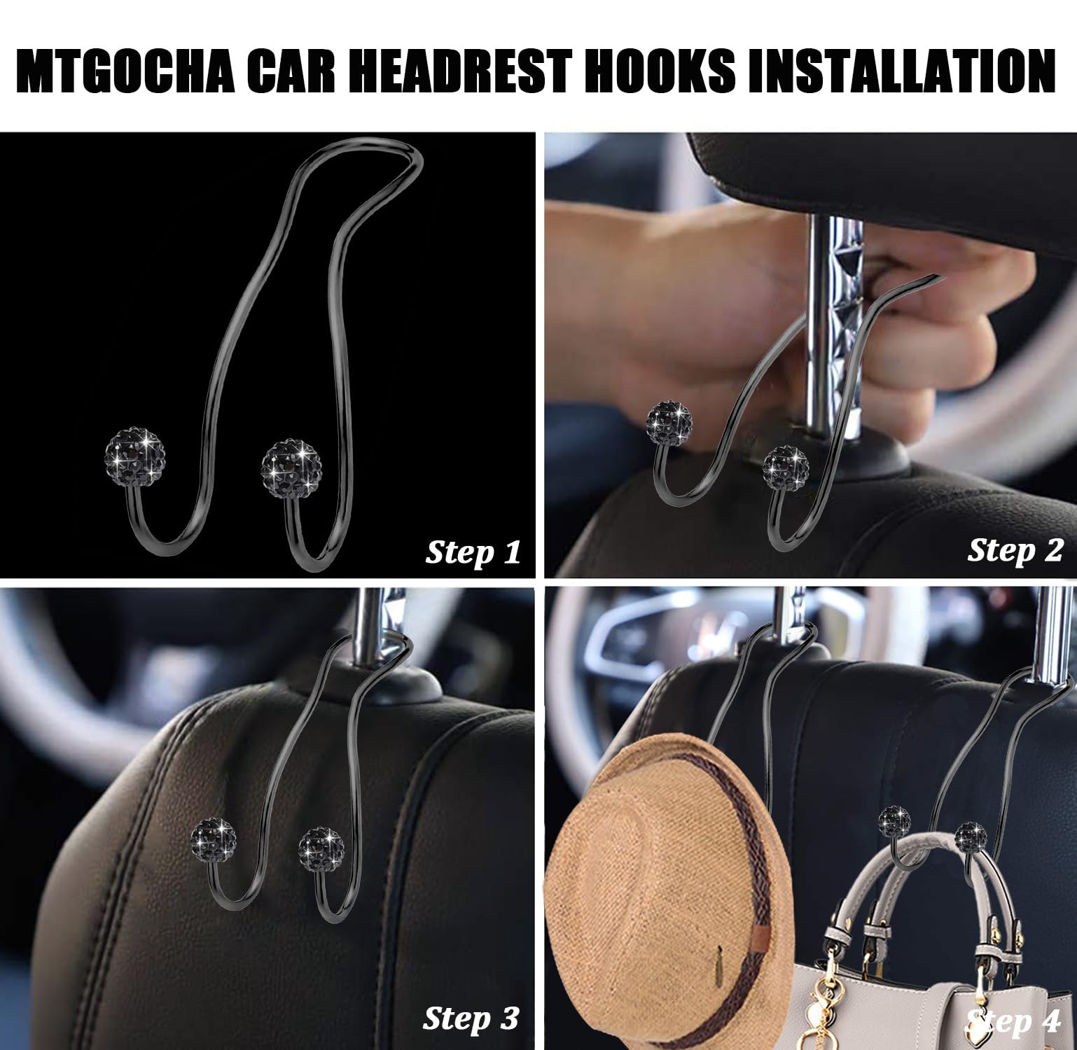 Bling Purse Hook for Car Headrest, Upgraded Cute Car Seat Hooks for Bag Handb...
