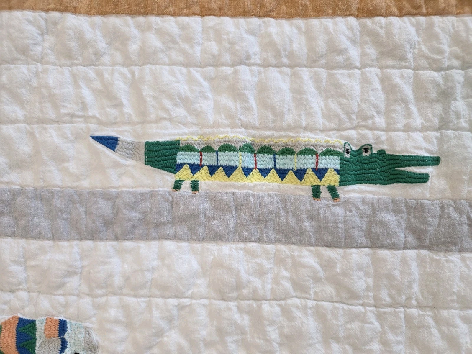 как выглядит Pottery Barn Kids Colby Animal Baby Quilt Alligator Elephant Safari Lion Crib фото