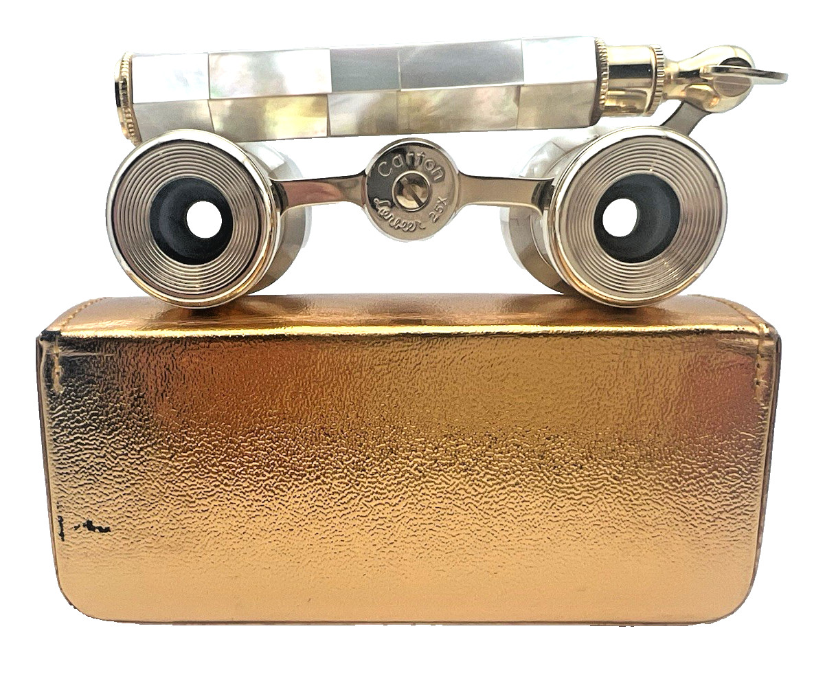 Vintage Carton 2.5x Mother Of Pearl Opera Theatre Binoculars W/Case Brass Japan