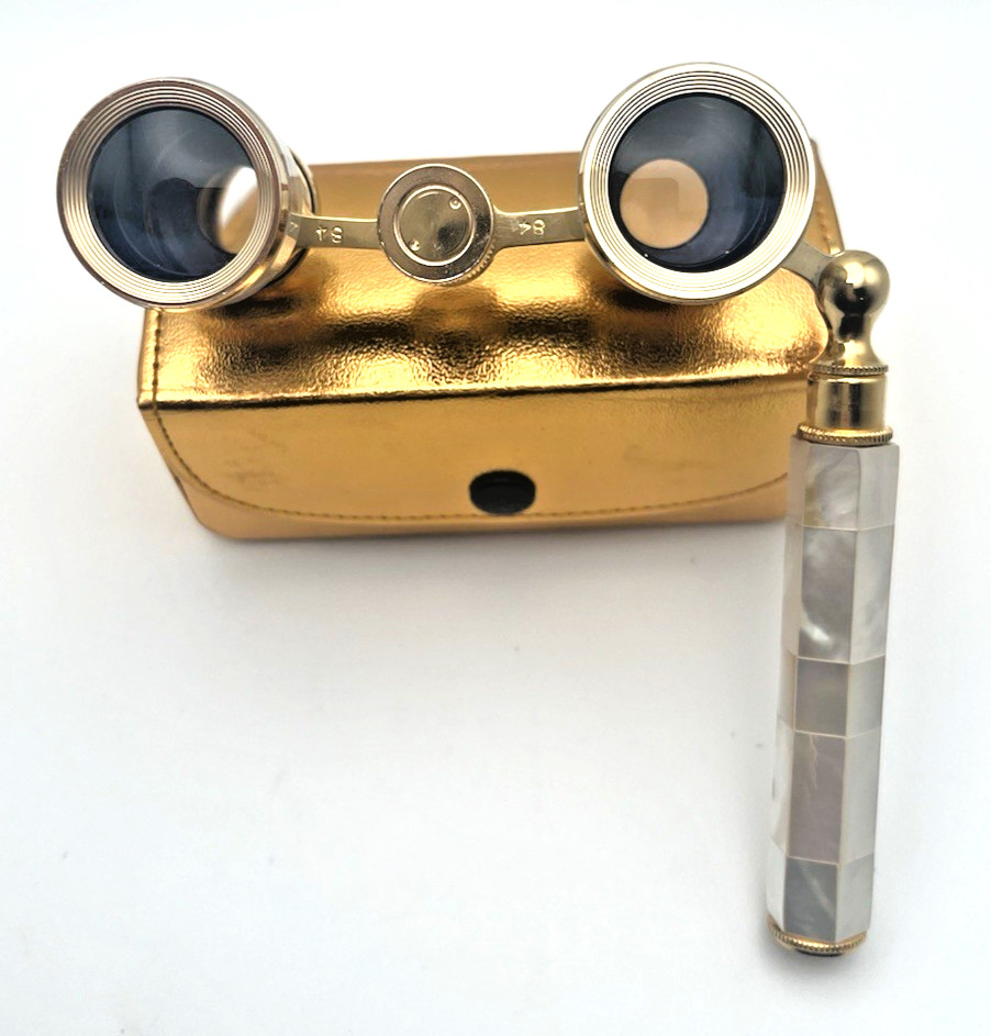 как выглядит Vintage Carton 2.5x Mother Of Pearl Opera Theatre Binoculars W/Case Brass Japan фото