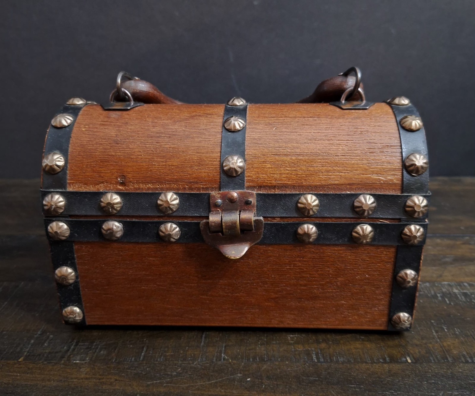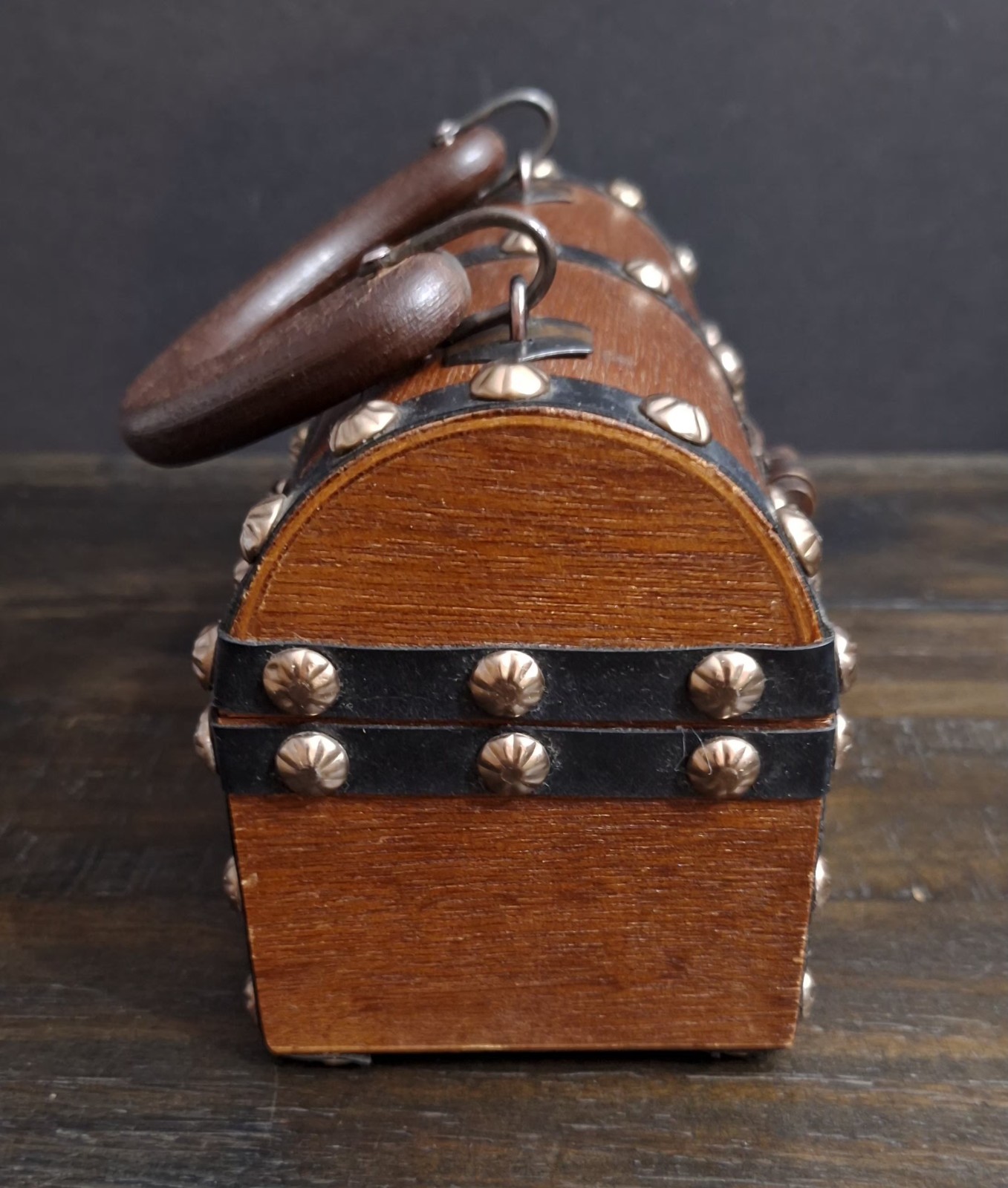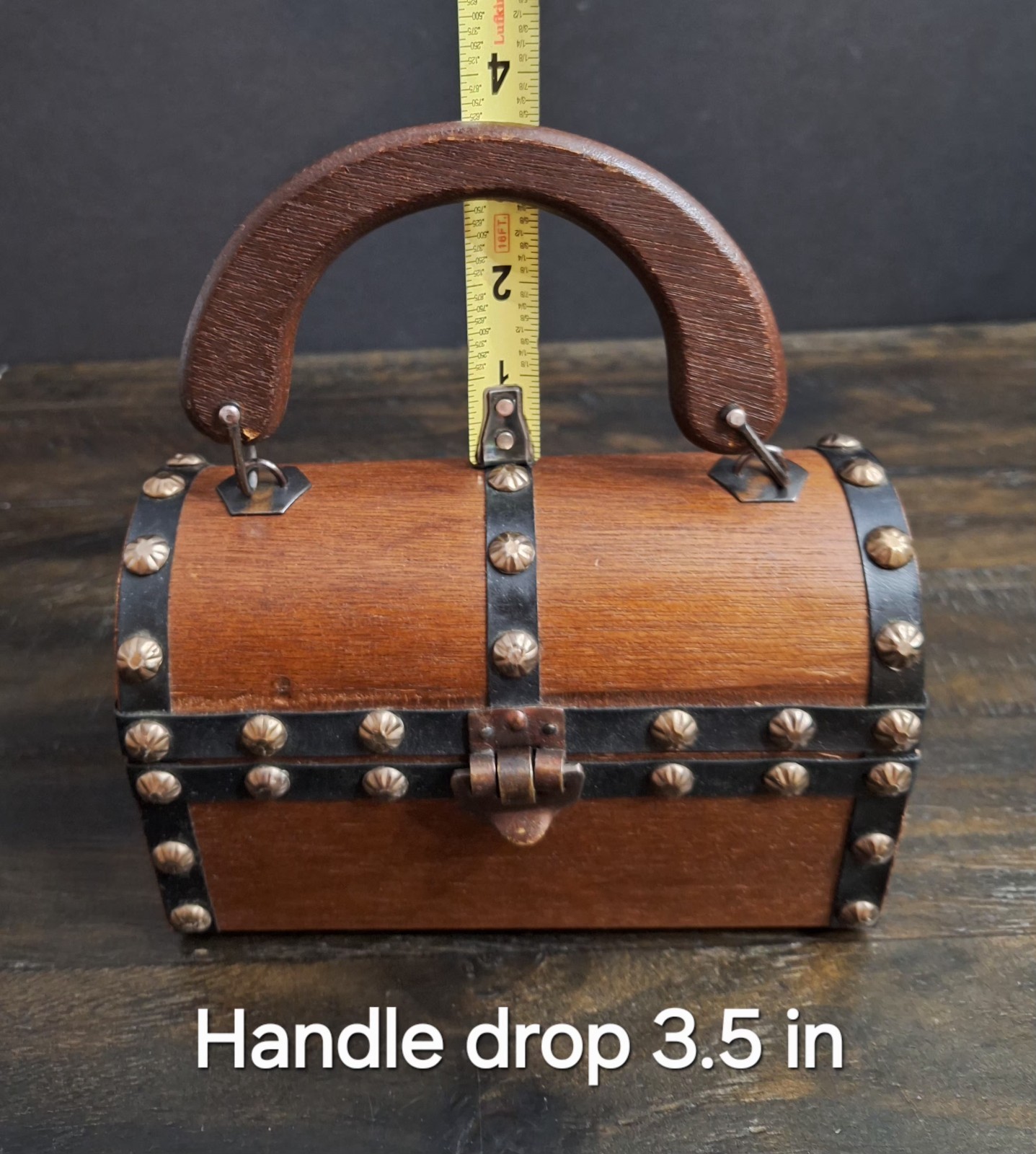 Vintage 1960 s Studded Treasure Chest Box Purse W/Handle Clasp Closure Hong Kong