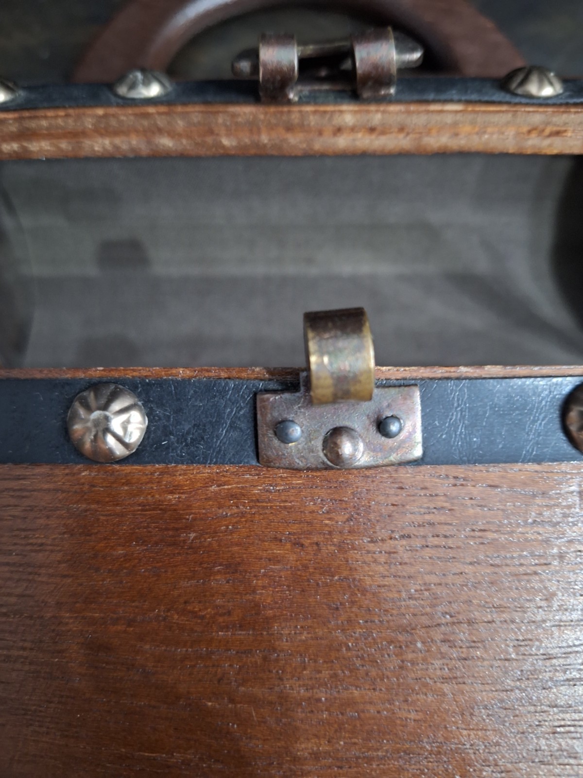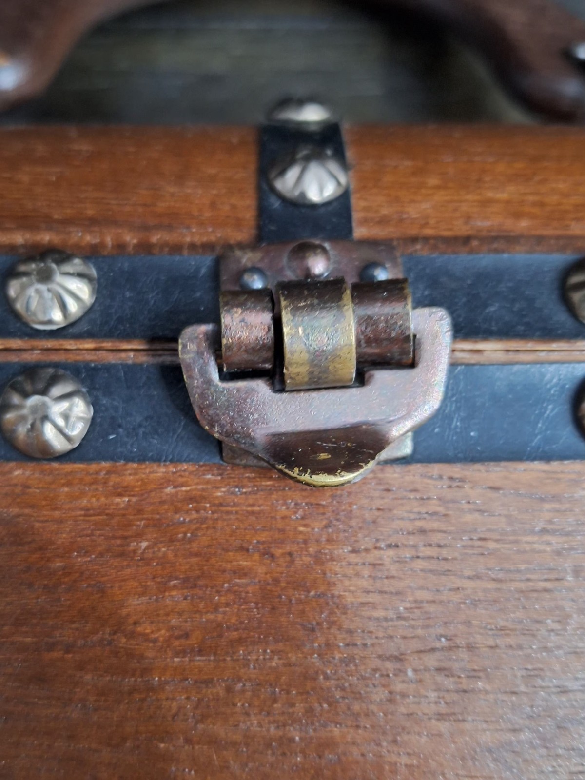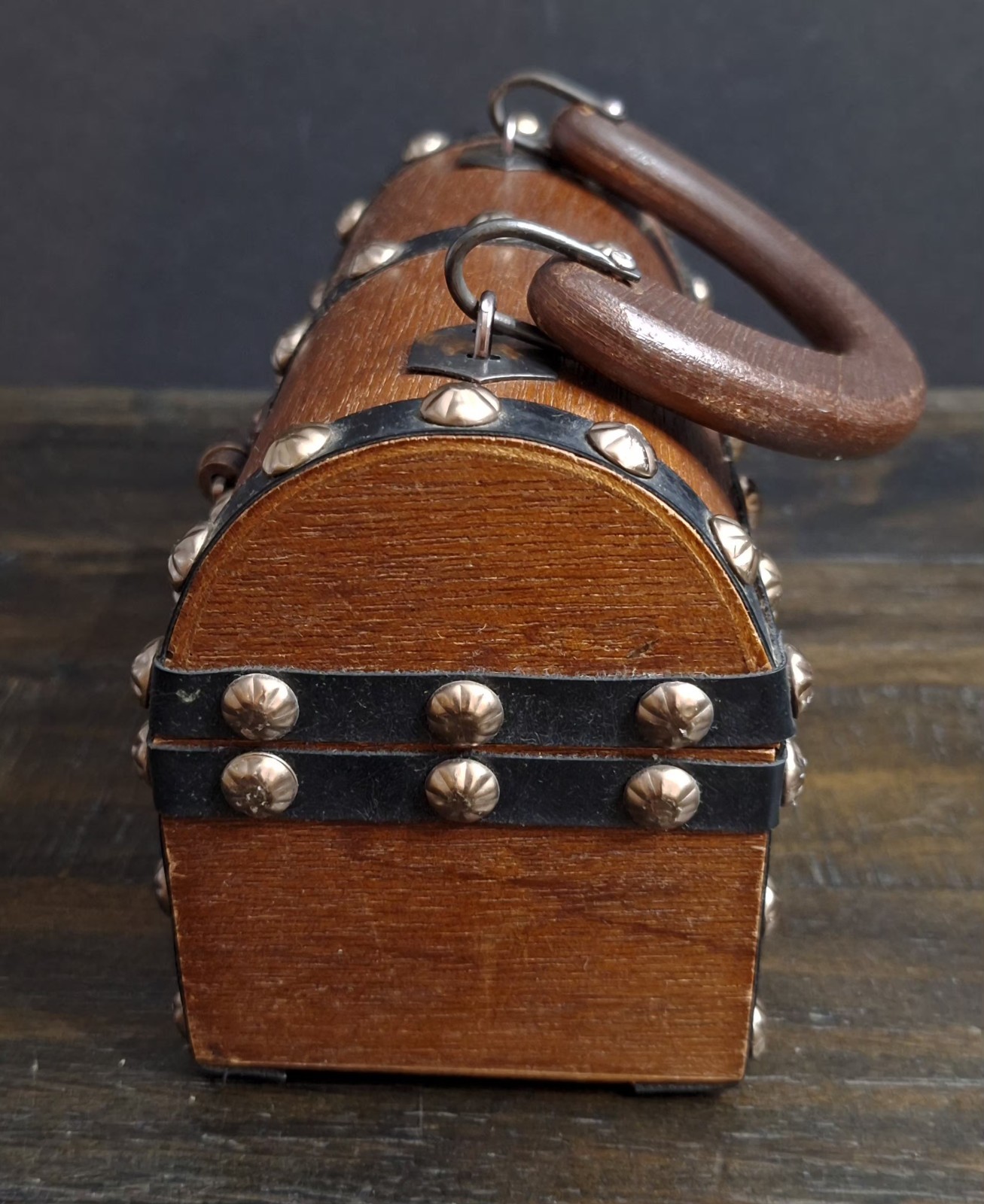 как выглядит Vintage 1960 s Studded Treasure Chest Box Purse W/Handle Clasp Closure Hong Kong фото