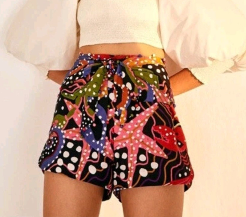как выглядит Farm Rio Marine Shorts Small Black Red Multicolor Beaded Belt "Under the Sea" фото