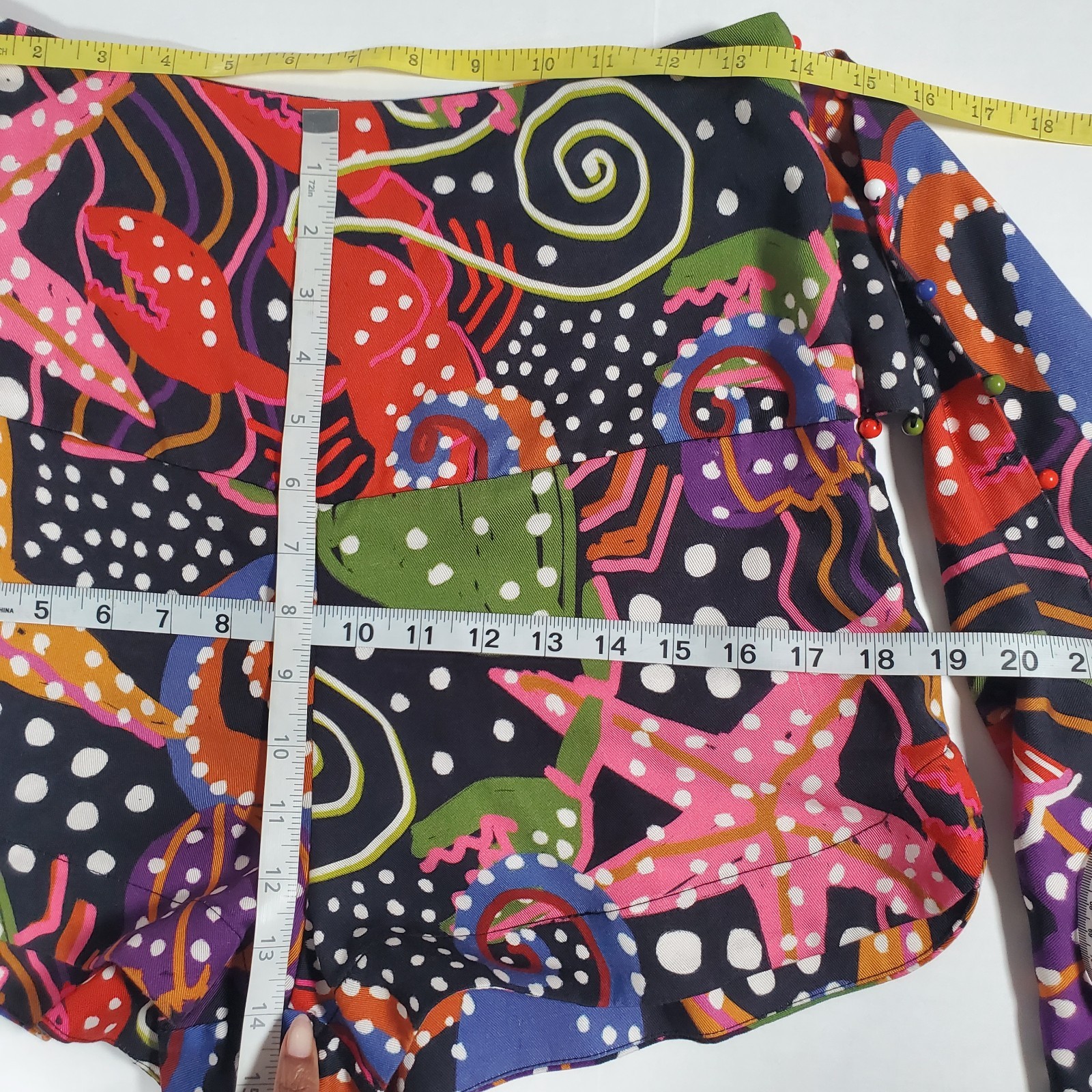 Farm Rio Marine Shorts Small Black Red Multicolor Beaded Belt Under the Sea