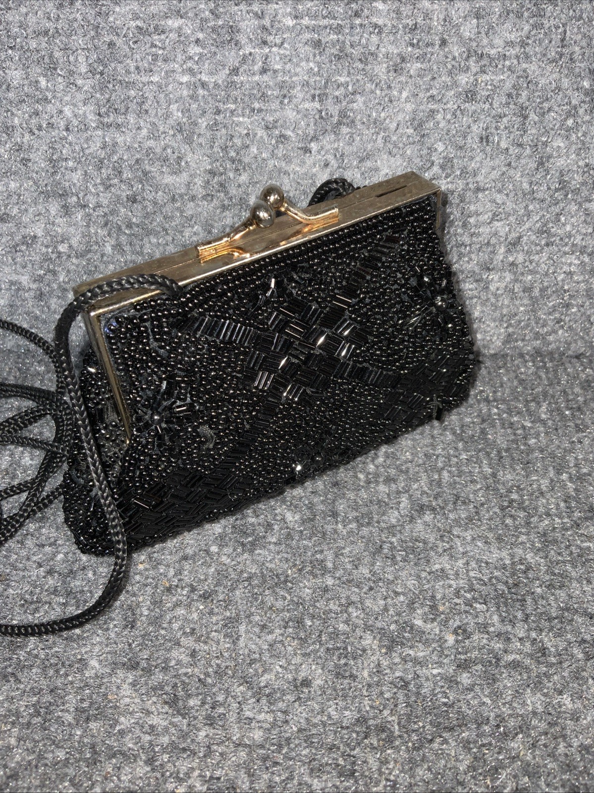 как выглядит Small Black Beaded Evening Bag 5.5 X 3.75 Tiny Bag Clutch Vintage фото