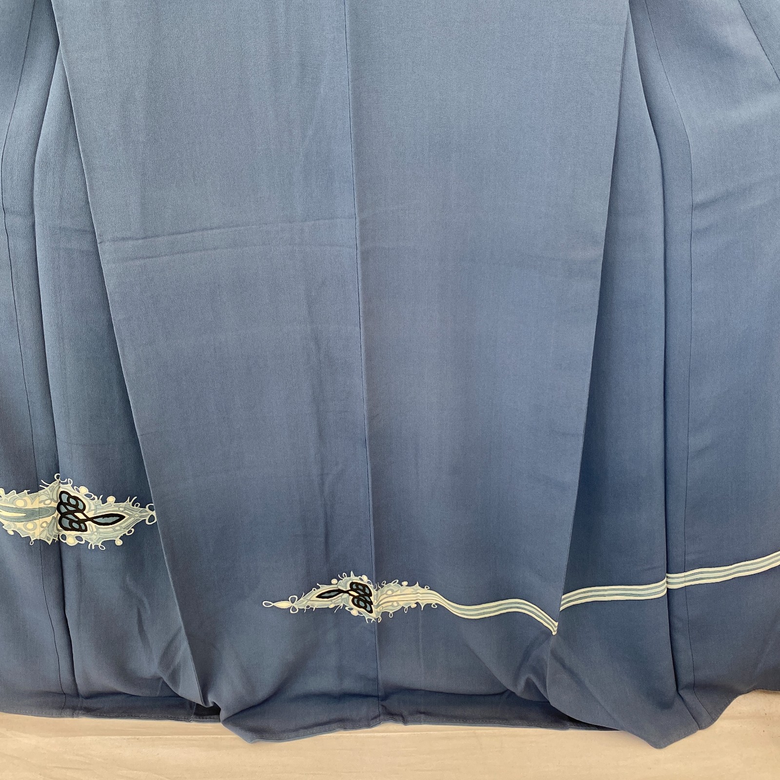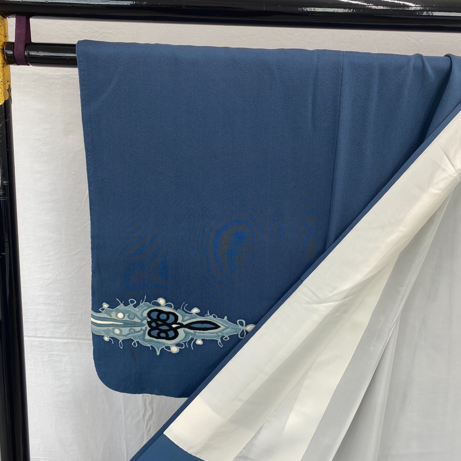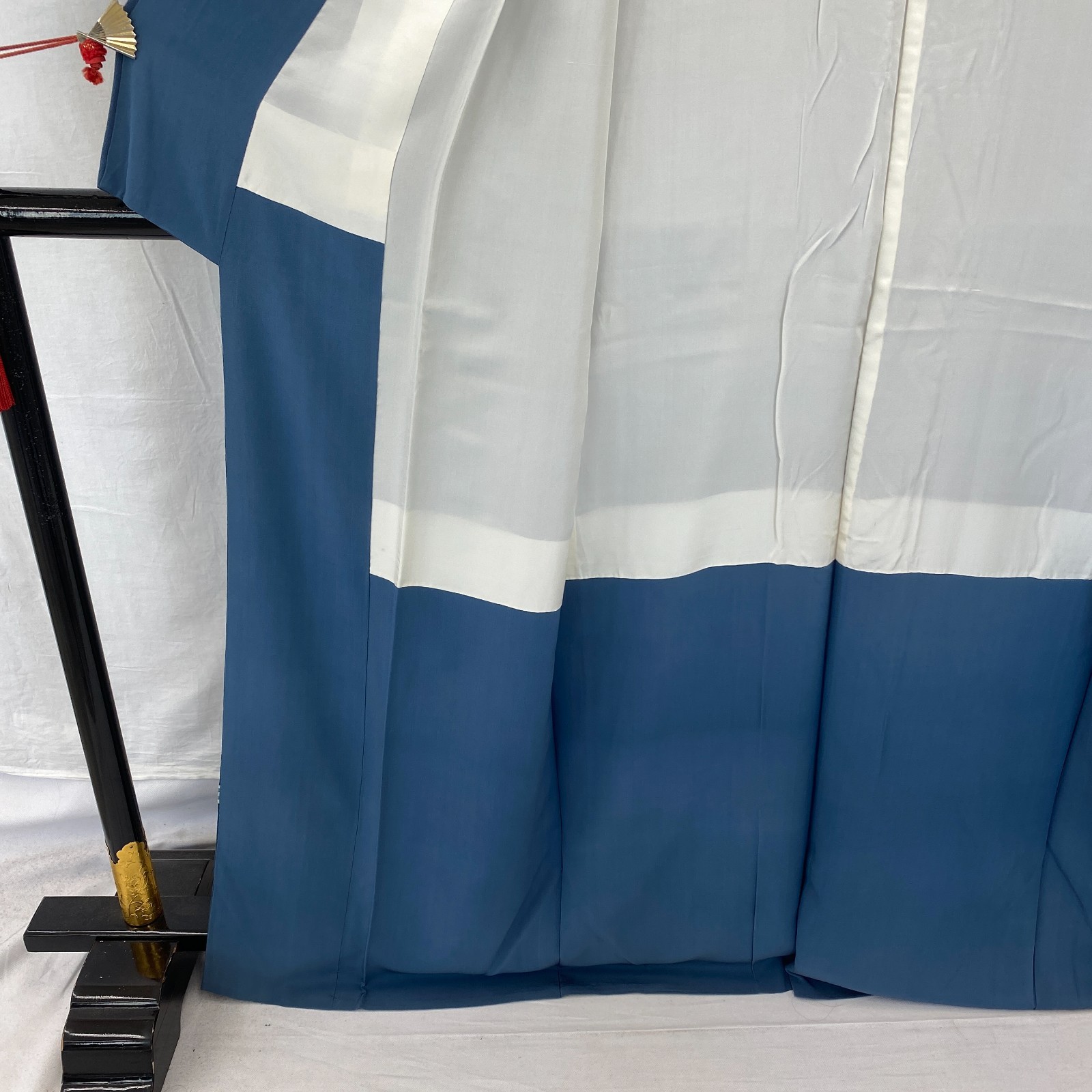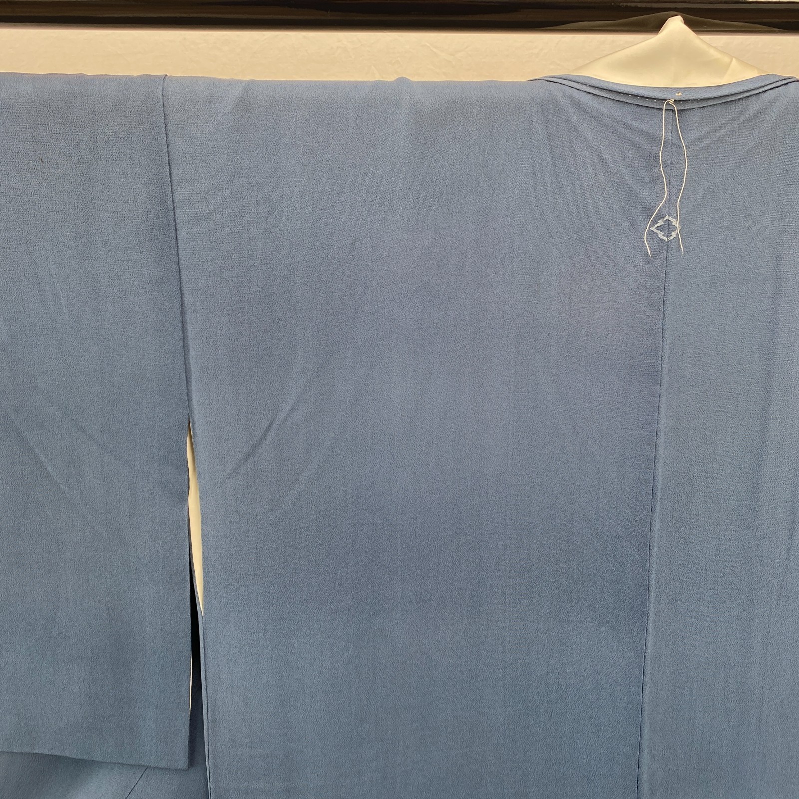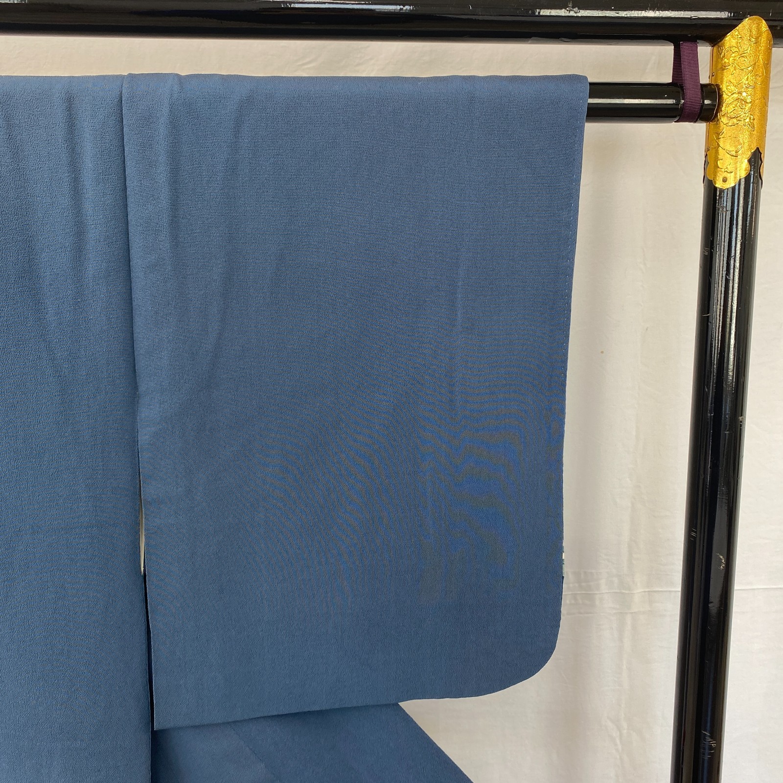 Japanese Vintage Kimono Silk Blue Family Crest Traditional Authentic Length 64in