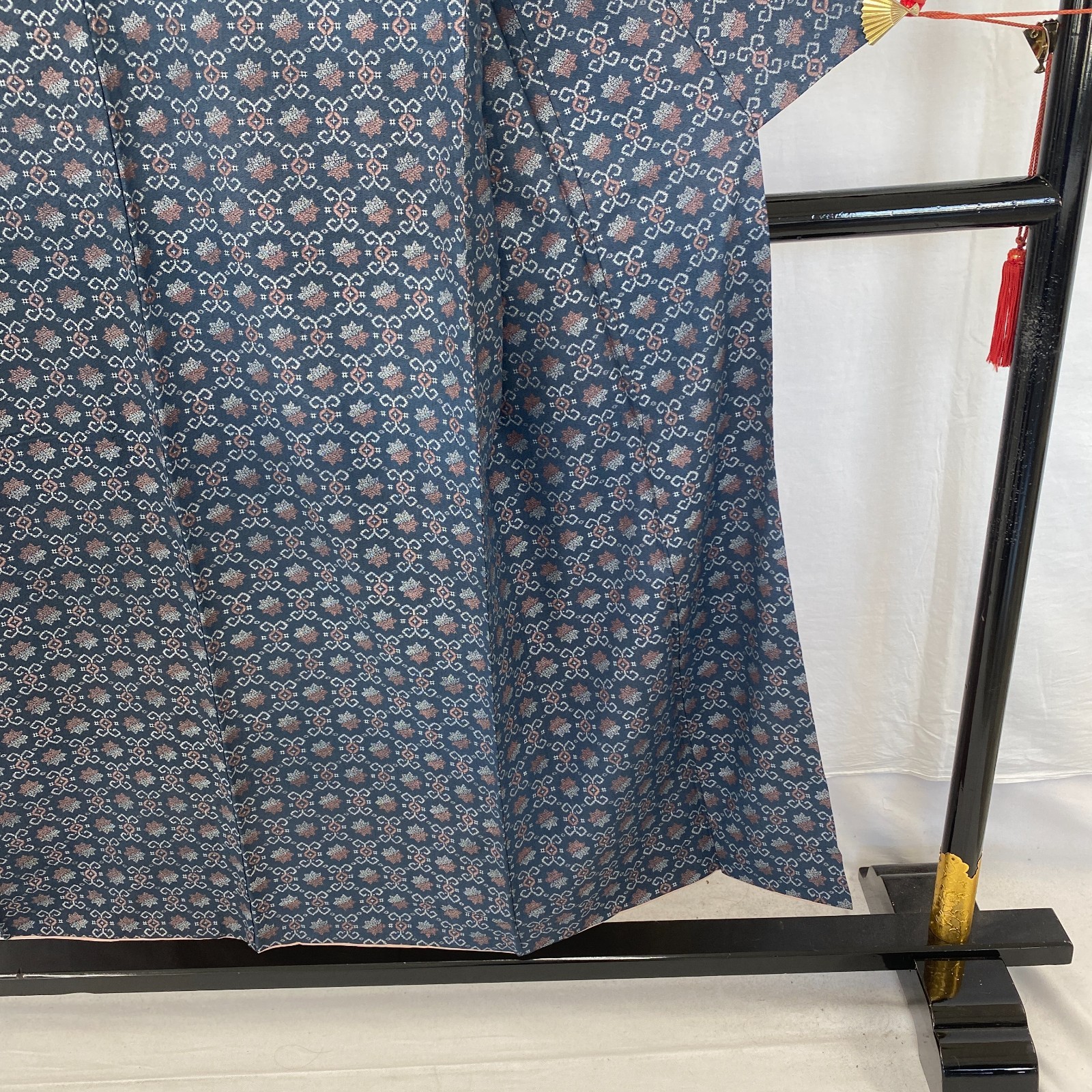 как выглядит Japanese Vintage Kimono Silk Navy Tumugi Komon Traditional Authentic Length 57in фото