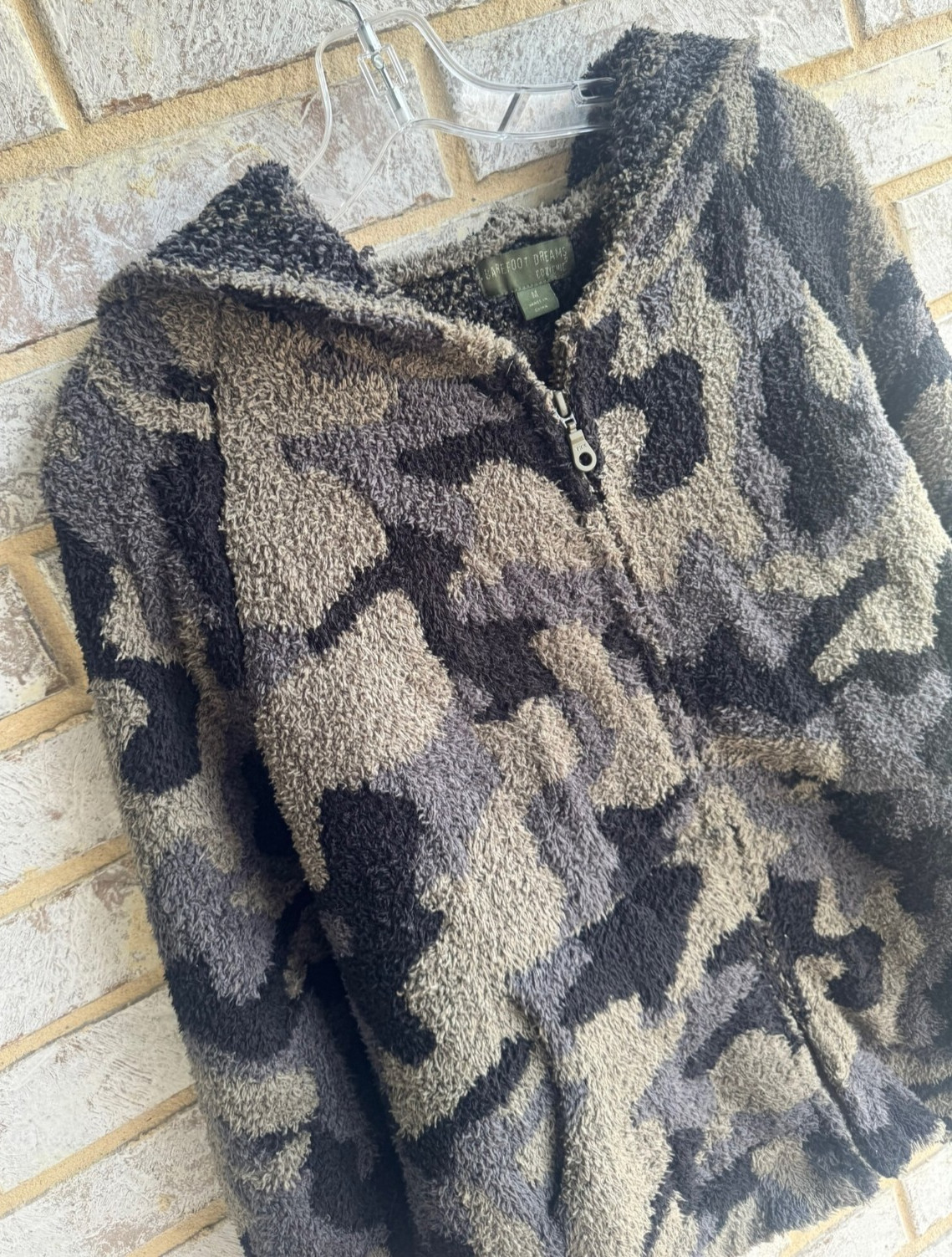как выглядит Barefoot Dreams Cozychic Camo Print Zip Up Hooded Sweater Womens Size M фото