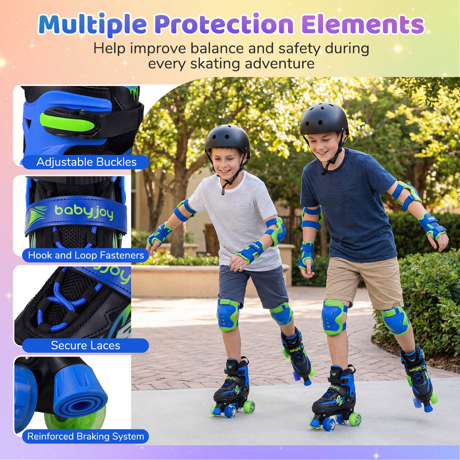 как выглядит Kids Roller Skates for Teens, 4 Sizes Adjustable Quad Skates w/ Light-up Wheels фото