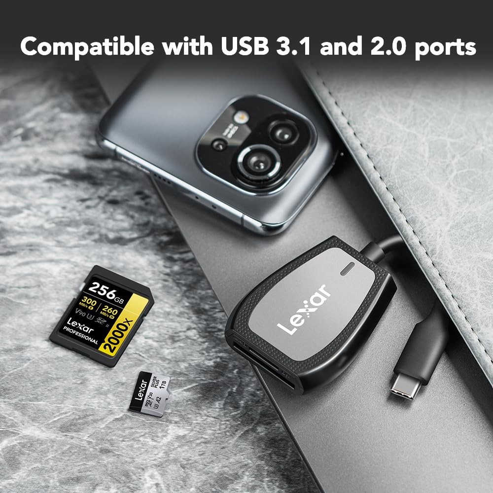 Lexar Professional USB C Dual Slot Memory Card Reader 312MBs Read Speeds