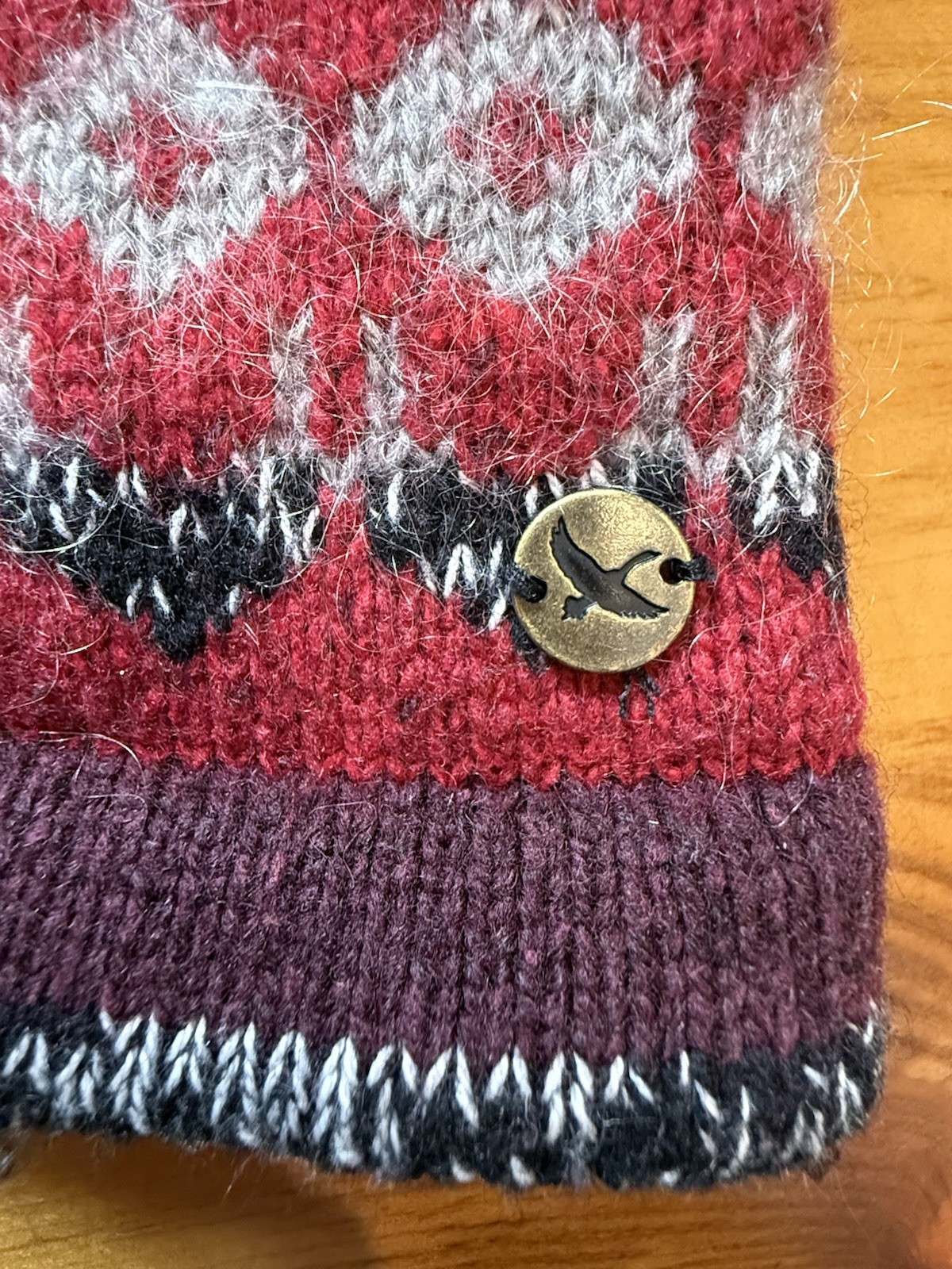 как выглядит VTG Eddie Bauer Sweater Women L Red Purple Cotton Wool Blend Fair Isle Cowl Neck фото