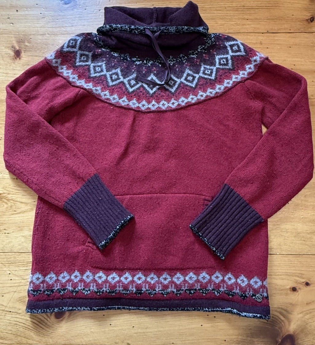 VTG Eddie Bauer Sweater Women L Red Purple Cotton Wool Blend Fair Isle Cowl Neck
