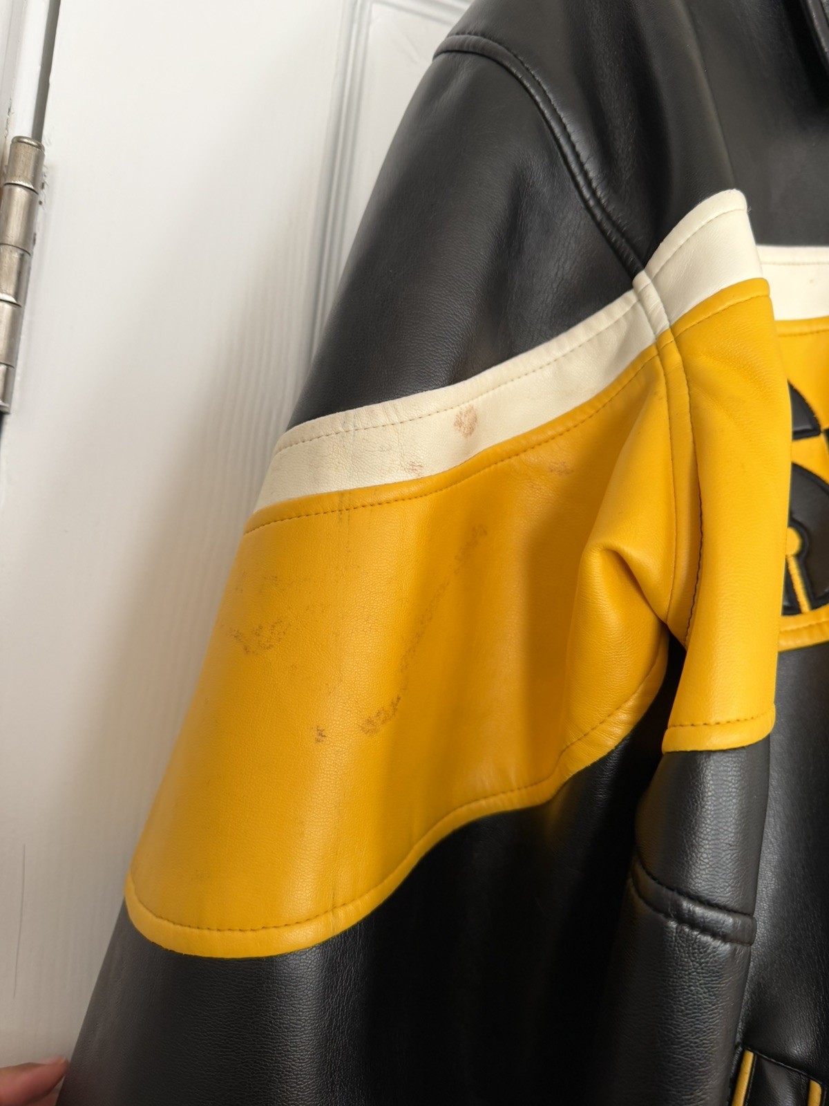 как выглядит NFL Pittsburgh Steelers Faux Leather Distressed Jacket Men s Large фото