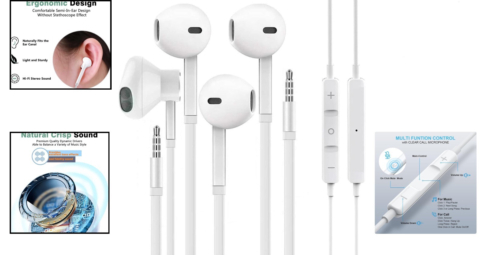 3.5mm Wired Earphones - Noise-Isolating, Built-in Mic Volume Control