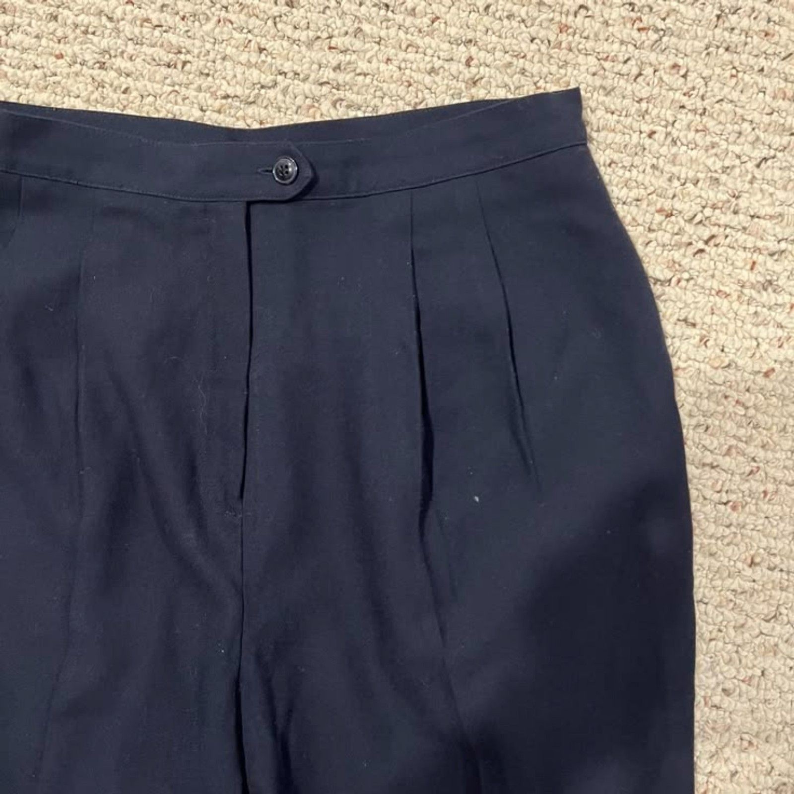 как выглядит Vintage Navy Blue High Waisted Pleated Lined Pants Trousers Size 10 фото