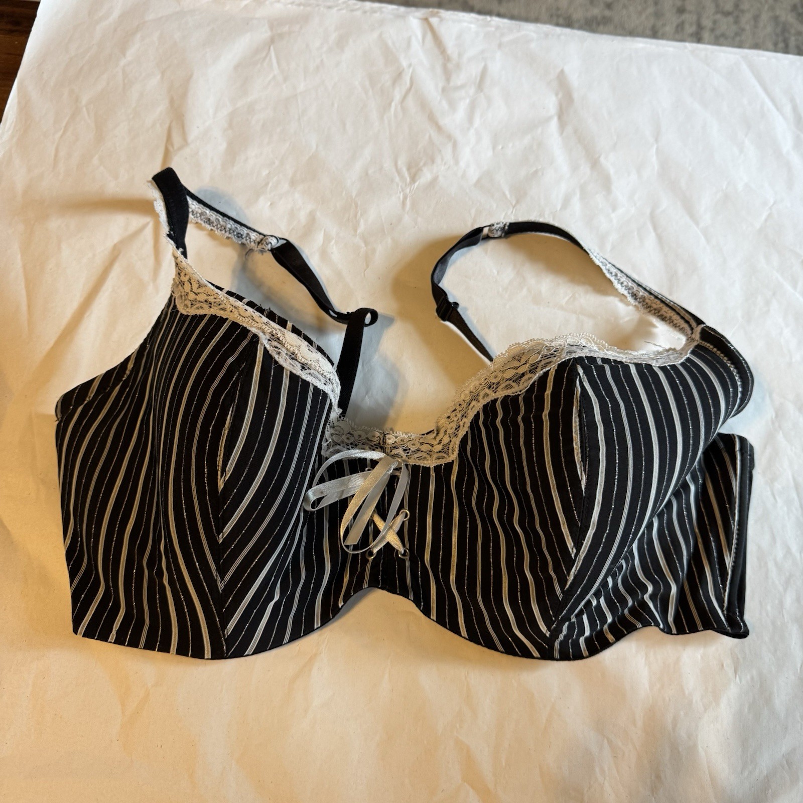 Frederick s Of Hollywood Lightly Lined Black And White Striped Bra Bow 42DDD/F