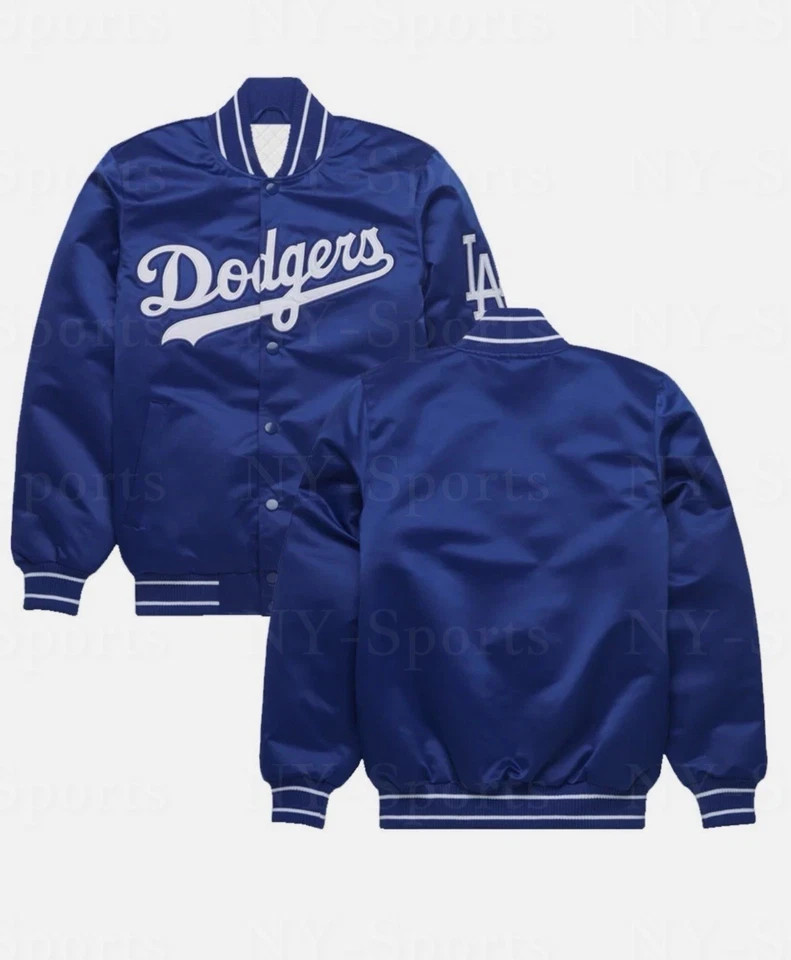 Dodgers LA Blue Satin Baseball Varsity Bomber Style Jacket All Sizes